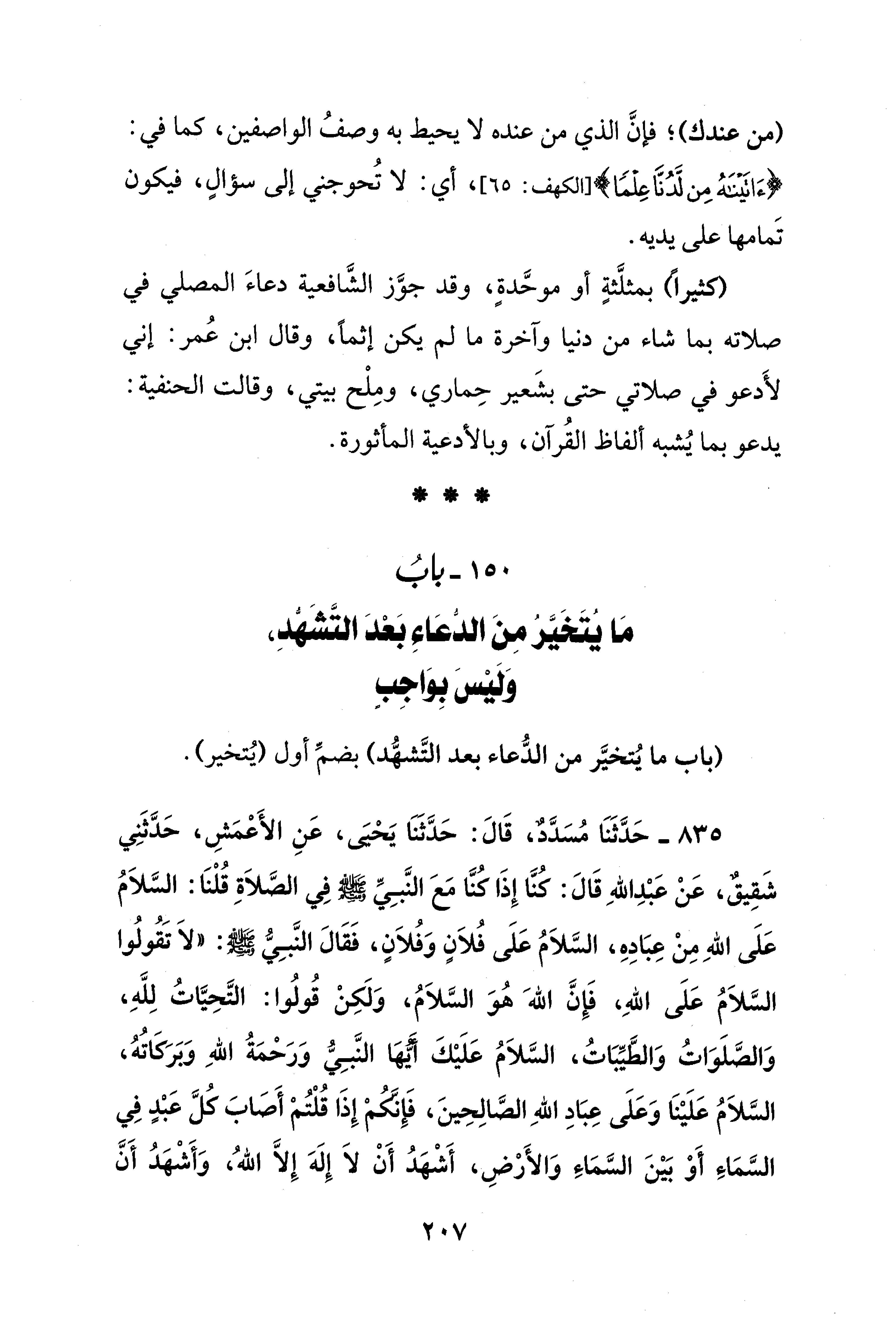 150 - بابُ مَا يُتَخَيَّرُ مِنَ الدُّعَاء بَعْدَ التَّشَهدِ، وَلَيْسَ بِوَاجِبٍ
