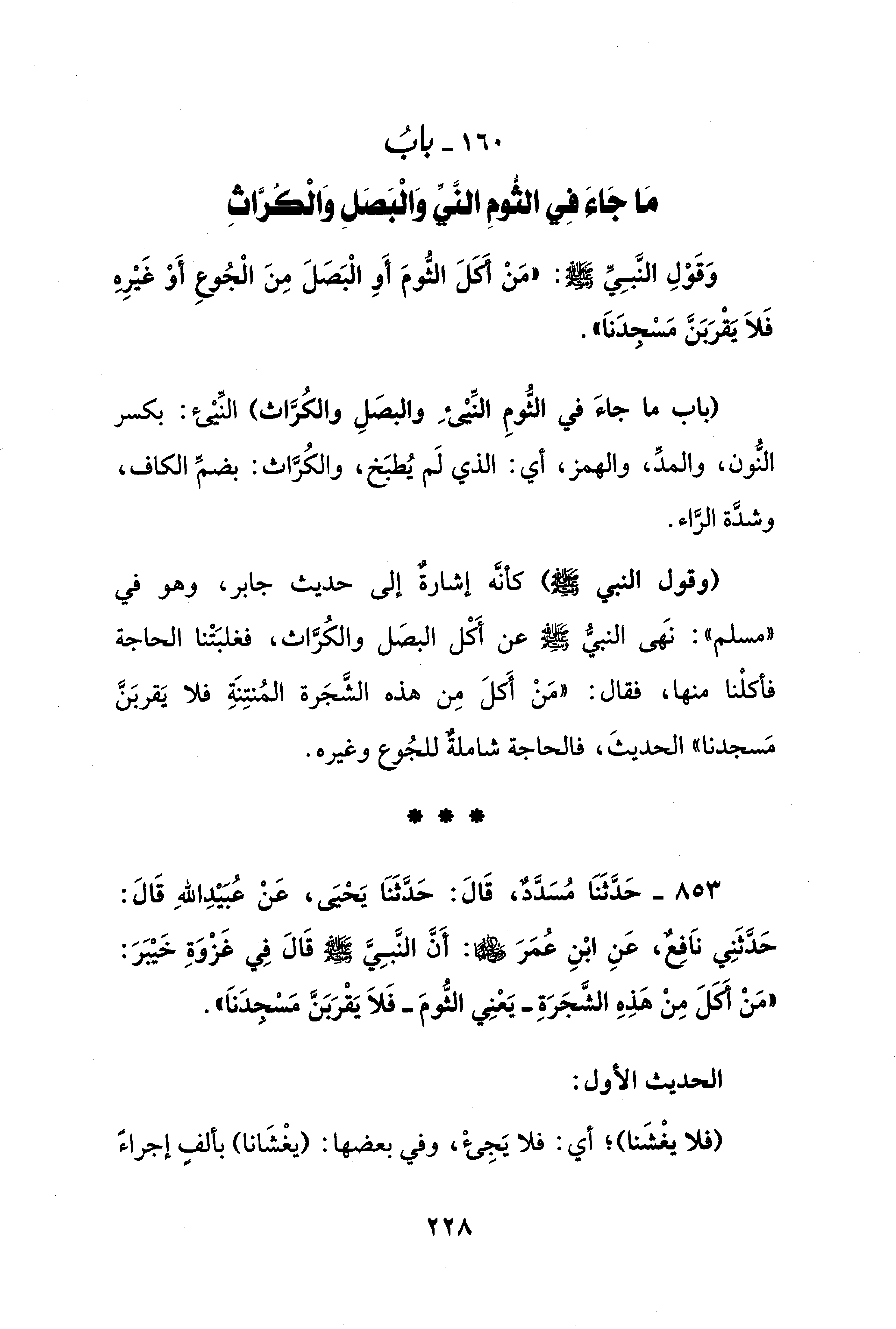 160 - بابُ مَا جَاء فِي الثوم النَّيِّ وَالْبَصَلِ وَالْكراثِ