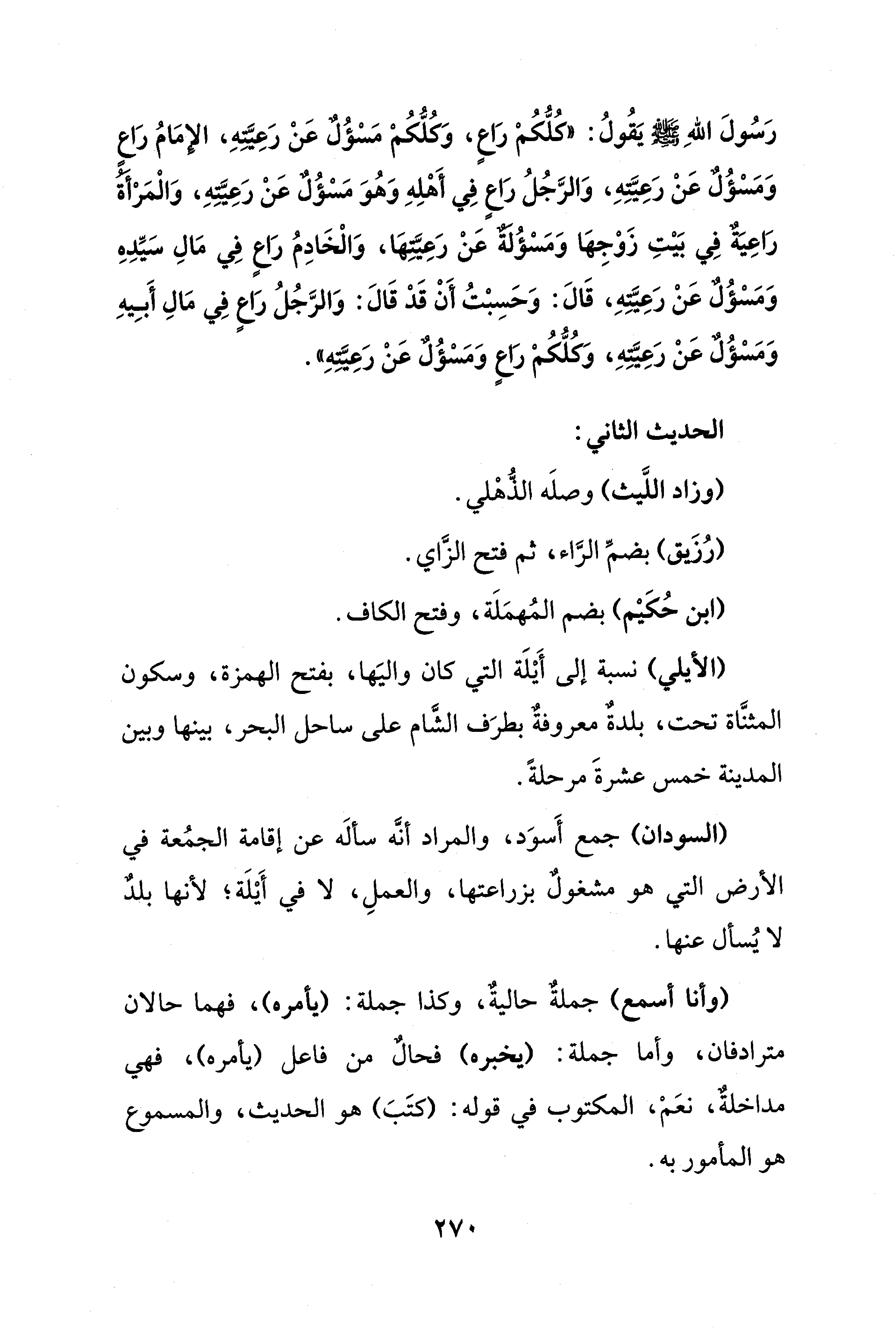 رَسُولَ اللهِ - صلى الله عليه وسلم - يَقُولُ: "كلُّكُمْ رَاعٍ، وَكُلُّكُمْ مَسْؤُلٌ عَنْ رَعِيتهِ، الإمَامُ رَاع وَمَسْؤُلٌ عَنْ رَعِيتهِ، وَالرَّجُلُ رَاعٍ فِي أَهْلِهِ وَهُوَ مَسْؤُلٌ عَنْ رَعِيتهِ، وَالْمَرْأة رَاعِيةٌ فِي بَيْتِ زَوْجِهَا وَمَسْؤُلةٌ عَنْ رَعِيتهَا، وَالْخَادِمُ رَاعٍ فِي مَالِ سَيِّده وَمَسْؤُلٌ عَنْ رَعِيتهِ، قَالَ: وَحَسِبْتُ أَنْ قَدْ قَالَ: وَالرَّجُلُ رَاعٍ فِي مَالِ أَبِيهِ وَمَسْؤُلٌ عَنْ رَعِيتهِ، وَكُلُّكُمْ رَاعٍ وَمَسْؤُل عَنْ رَعِتيهِ".