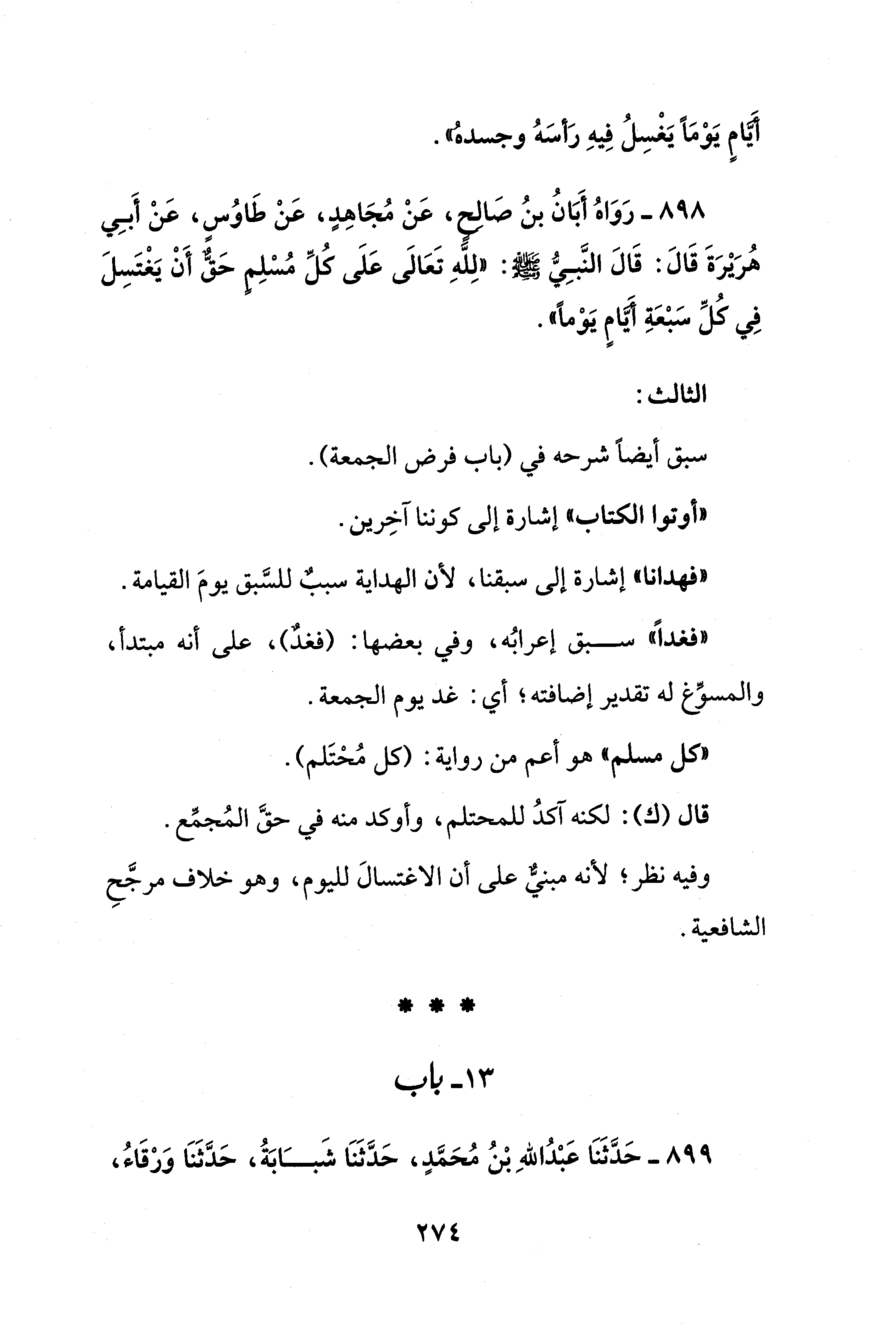 898 - رَوَاهُ أَبَانُ بنُ صَالِحٍ، عَنْ مُجَاهِدٍ، عَنْ طَاوُسٍ، عَنْ أَبِي هُرَيْرَةَ قَالَ: قَالَ النَّبِيُّ - صلى الله عليه وسلم -: "لله تَعَالَى عَلَى كُلِّ مُسْلِمٍ حَقٌّ أَنْ يَغْتَسِلَ فِي كُلِّ سَبْعَةِ أيامٍ يَوْمًا".