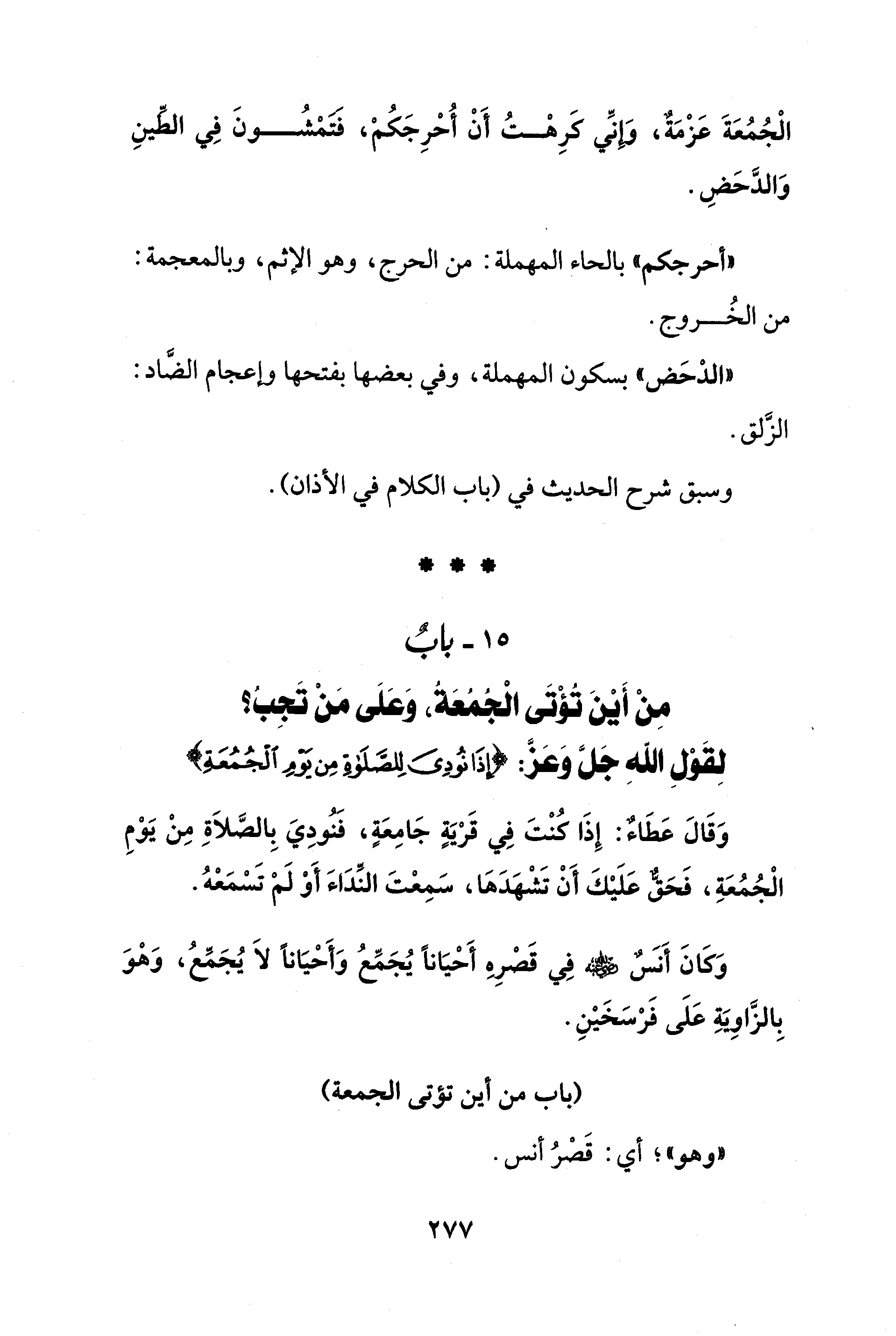 الْجُمُعَةَ عَزْمَةٌ، وَإِنِّي كَرِهْتُ أَنْ أُحْرِجَكُمْ، فتمْشُونَ فِي الطينِ وَالدَّحَضِ.