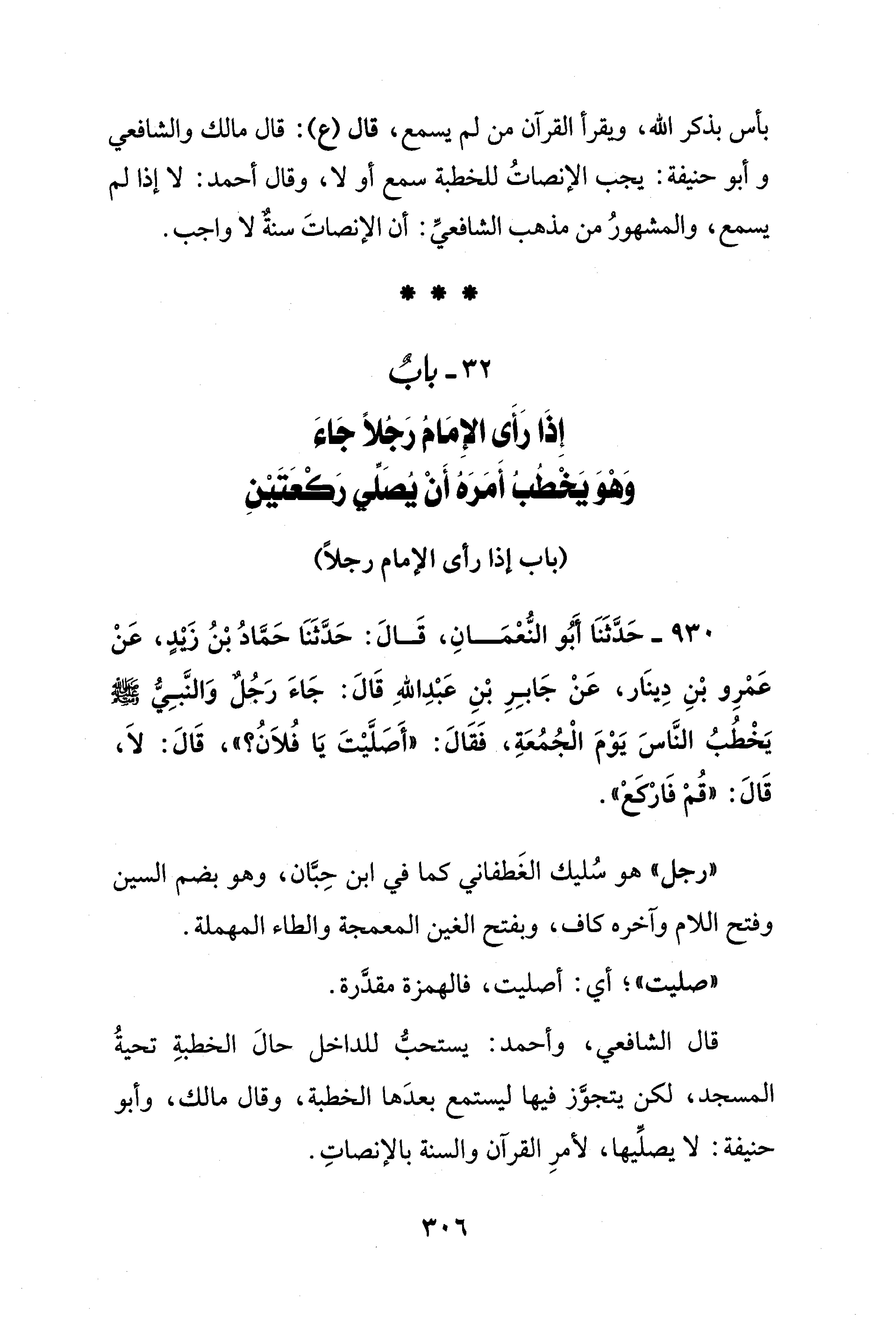 32 - بابٌ إِذَا رَأَى الإِمَامُ رَجُلًا جَاءَ وَهْوَ يَخْطُبُ أَمَرَهُ أَنْ يُصَلِّي رَكْعَتَيْنِ