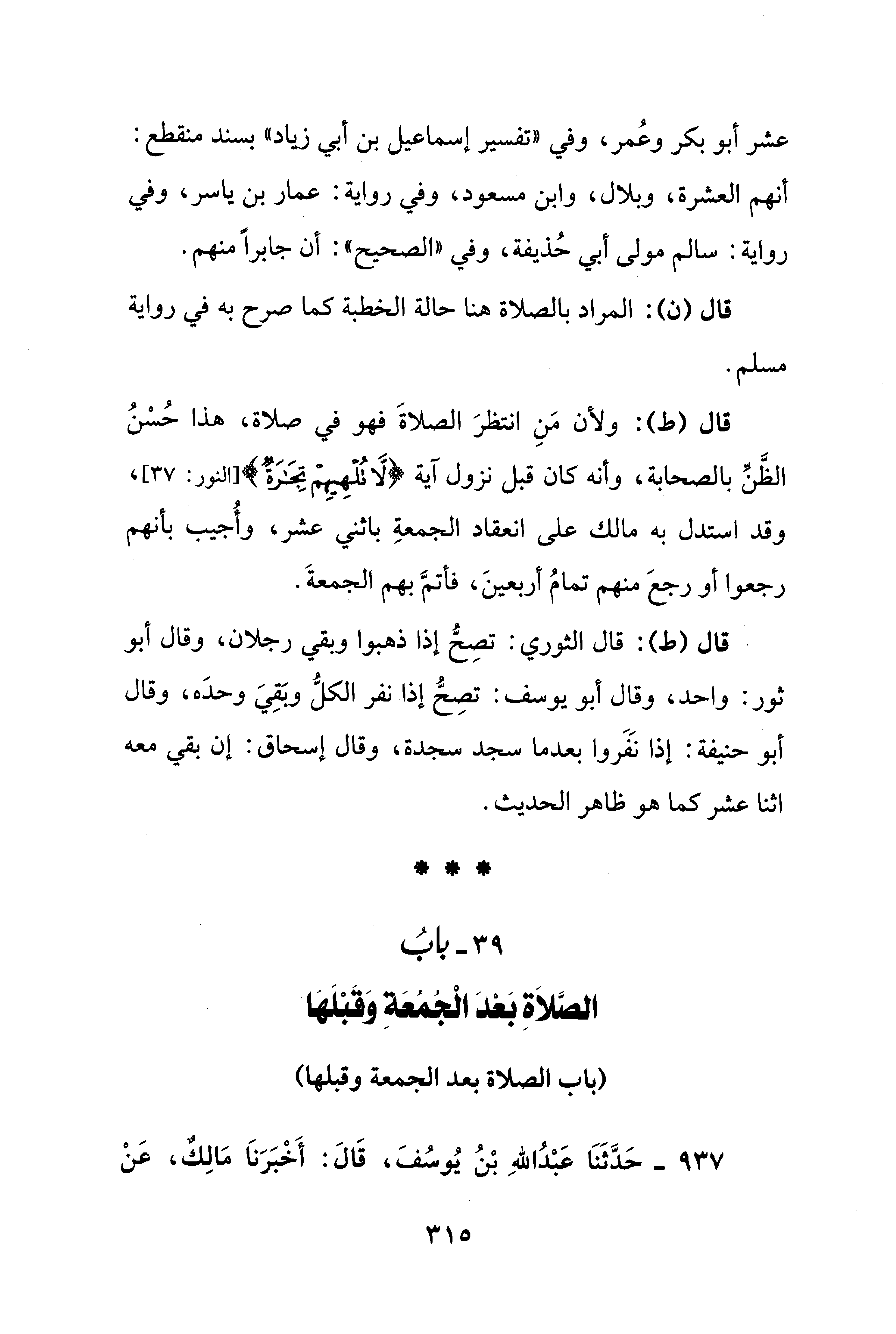 39 - بابُ الصَّلاَةِ بَعْدَ الْجُمُعَةِ وَقَبْلَهَا