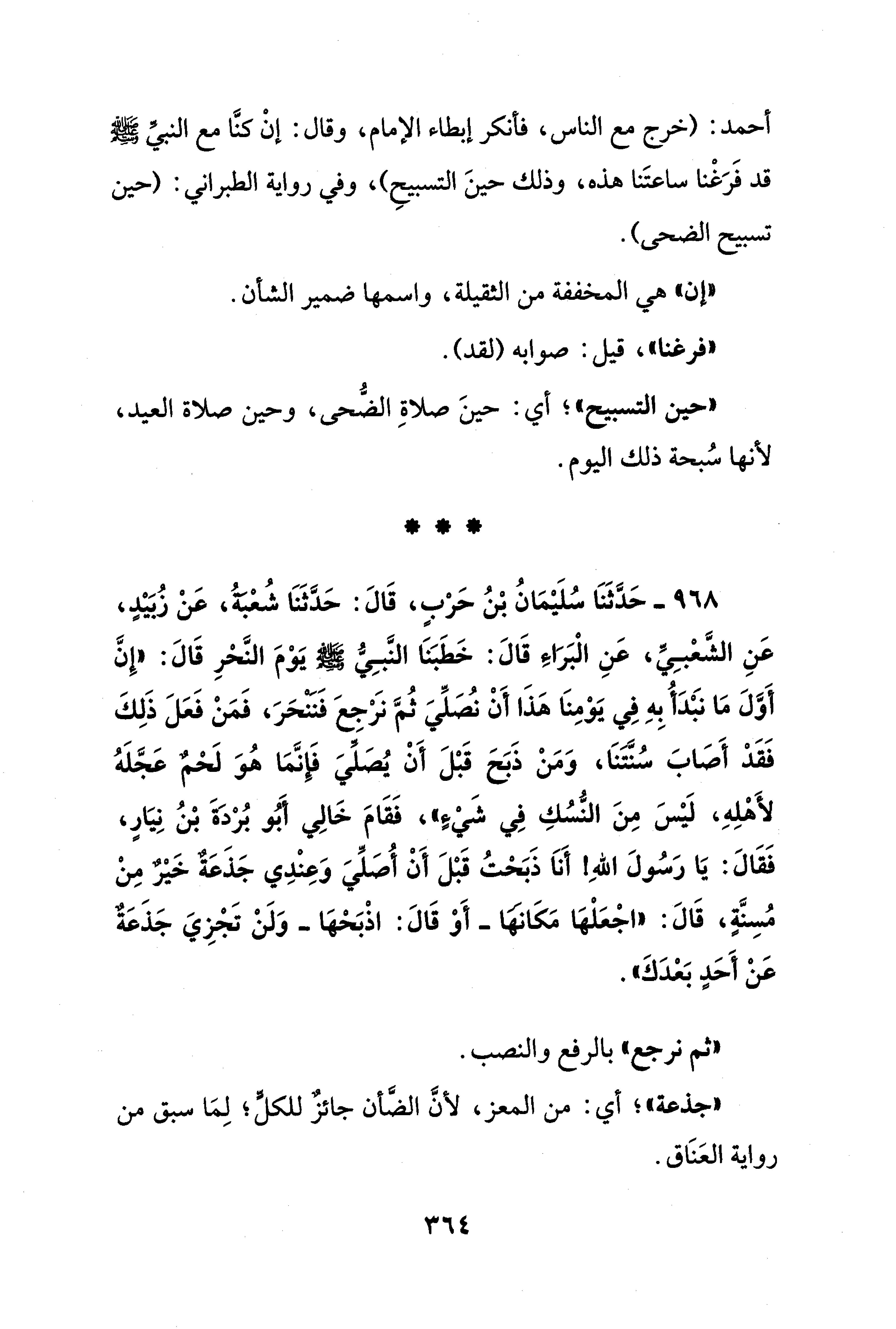أحمد: (خرج مع الناس، فأنكر إبطاء الإمام، وقال: إنْ كنَّا مع النبيِّ - صلى الله عليه وسلم - قد فَرَغْنا ساعتَنا هذه، وذلك حينَ التسبيحِ)، وفي رواية الطبراني: (حين تسبيح الضحى).