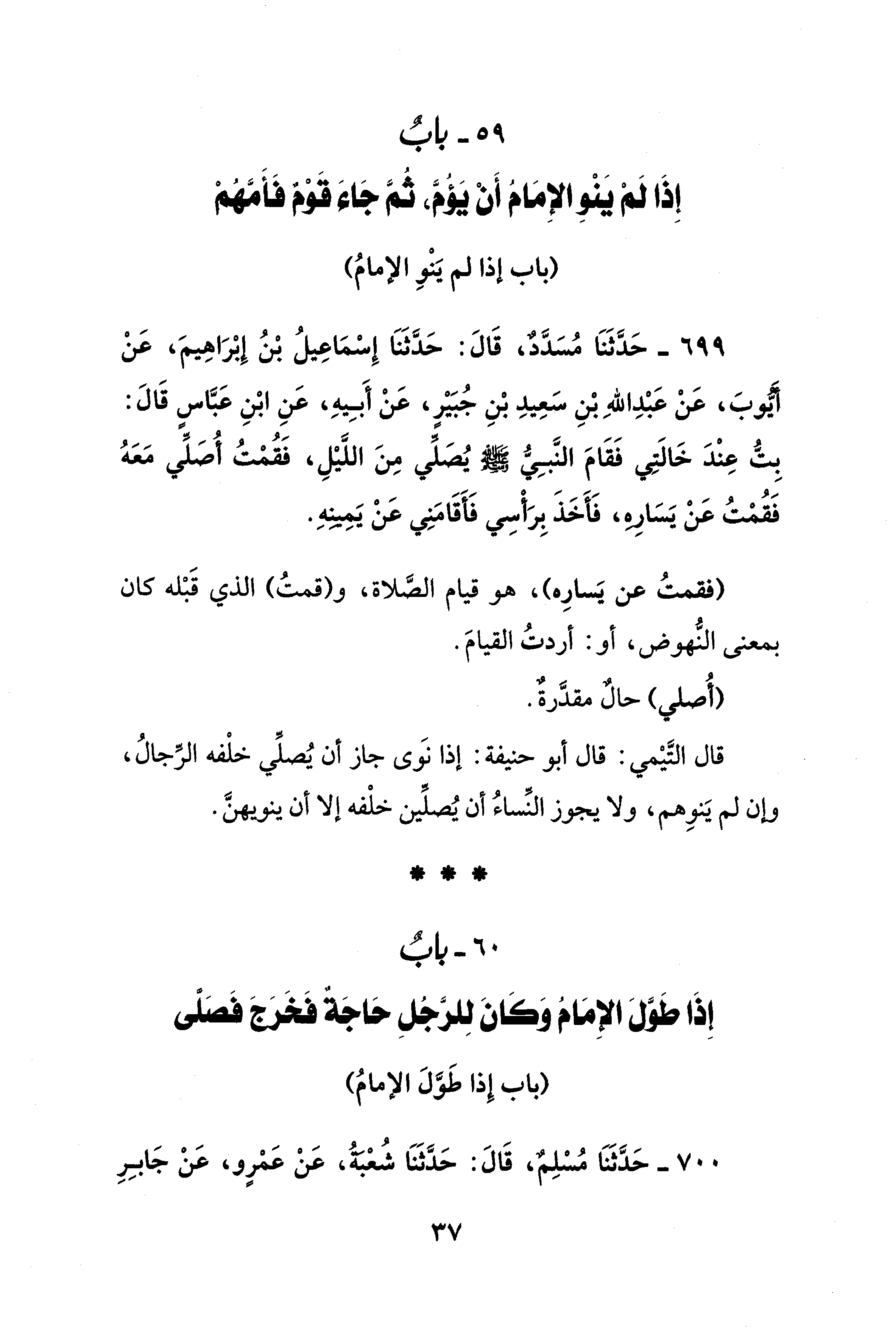 59 - بابٌ إذَا لَمْ يَنْوِ الإِمَامُ أَنْ يَؤُمَّ، ثُمَّ جَاء قَوْمٌ فَأَمَّهُمْ