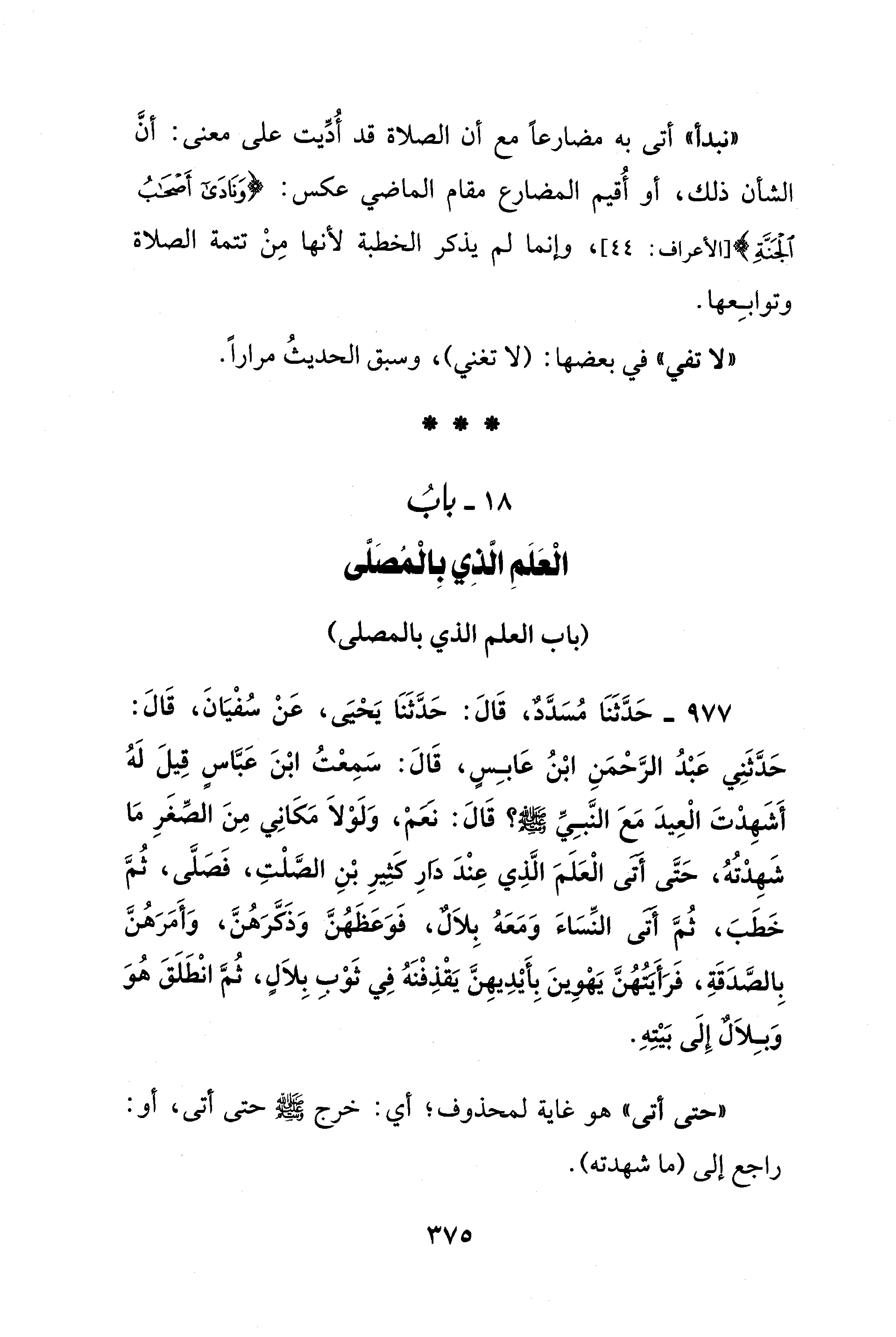 (باب العلم الذي بالمصلى)