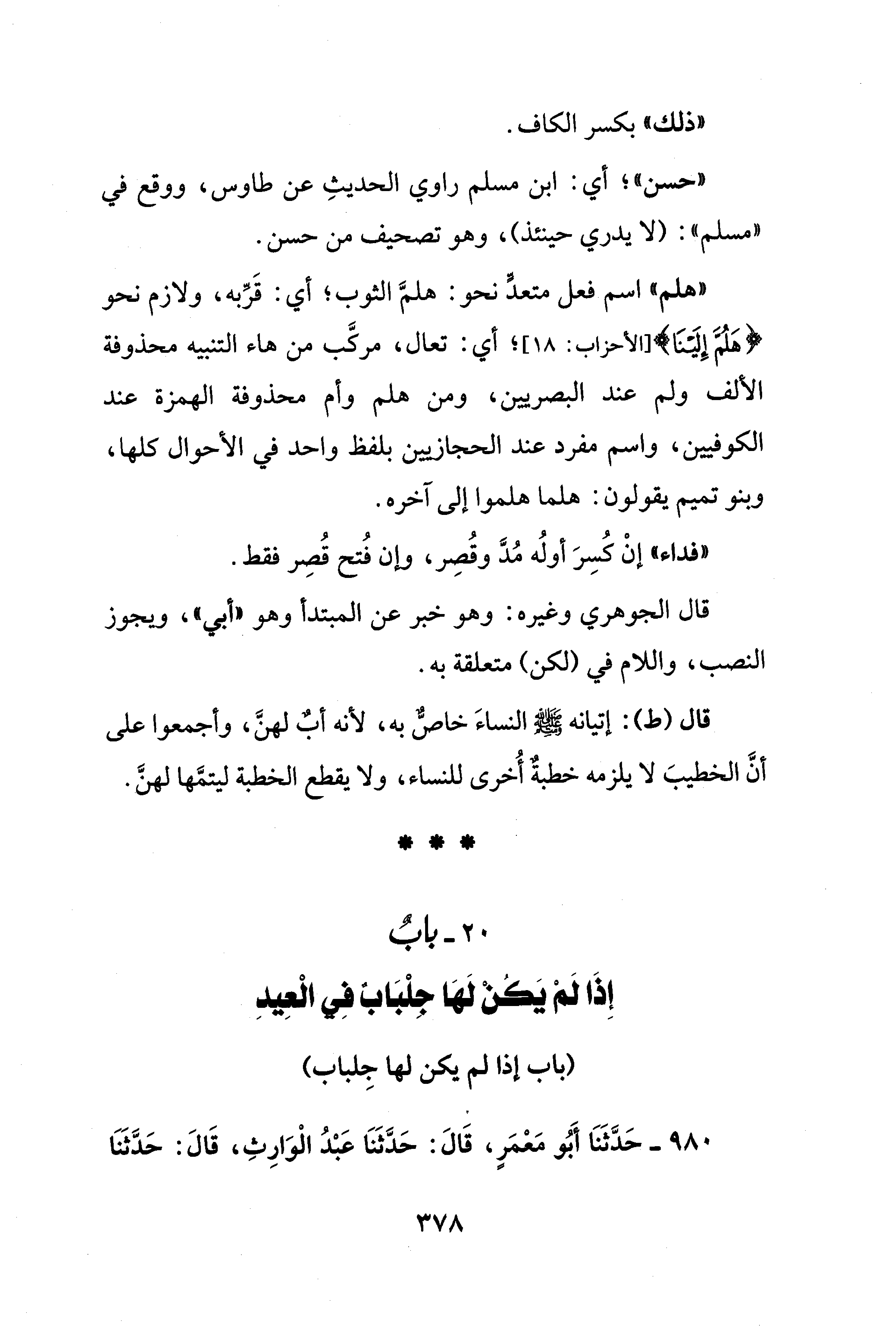 20 - بابٌ إِذَا لَمْ يَكُنْ لَهَا جِلْبَابٌ فِي الْعِيدِ