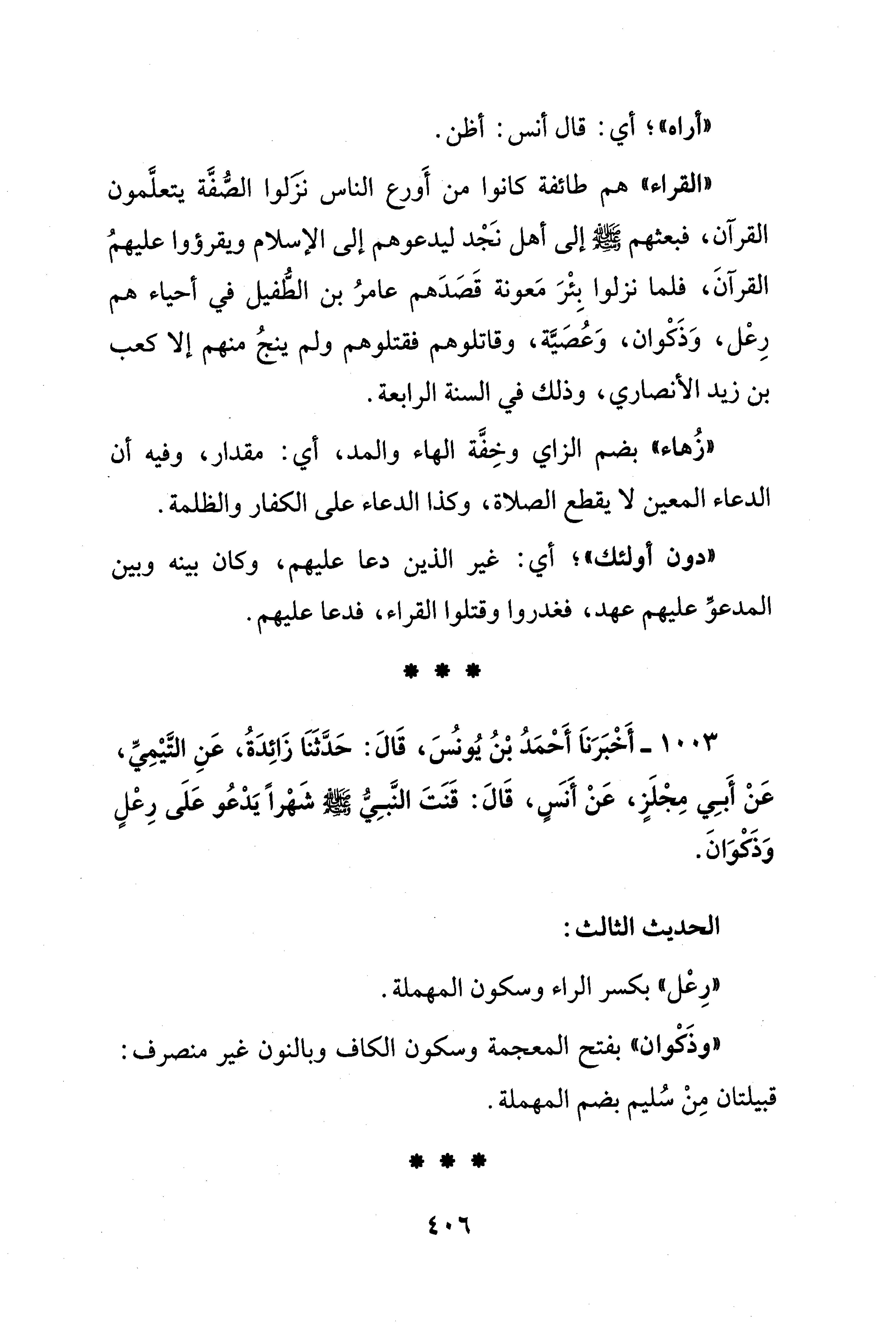 1003 - أَخْبَرَناَ أَحْمَدُ بْنُ يُونسُ، قَالَ: حَدَّثَنَا زَائِدَةُ، عَنِ التَّيْمِيِّ، عَنْ أَبِي مِجْلَزٍ، عَنْ أَنسٍ، قَالَ: قَنَتَ النَّبِيُّ - صلى الله عليه وسلم - شَهْرًا يَدْعُو عَلَى رِعْلٍ وَذَكْوَانَ.