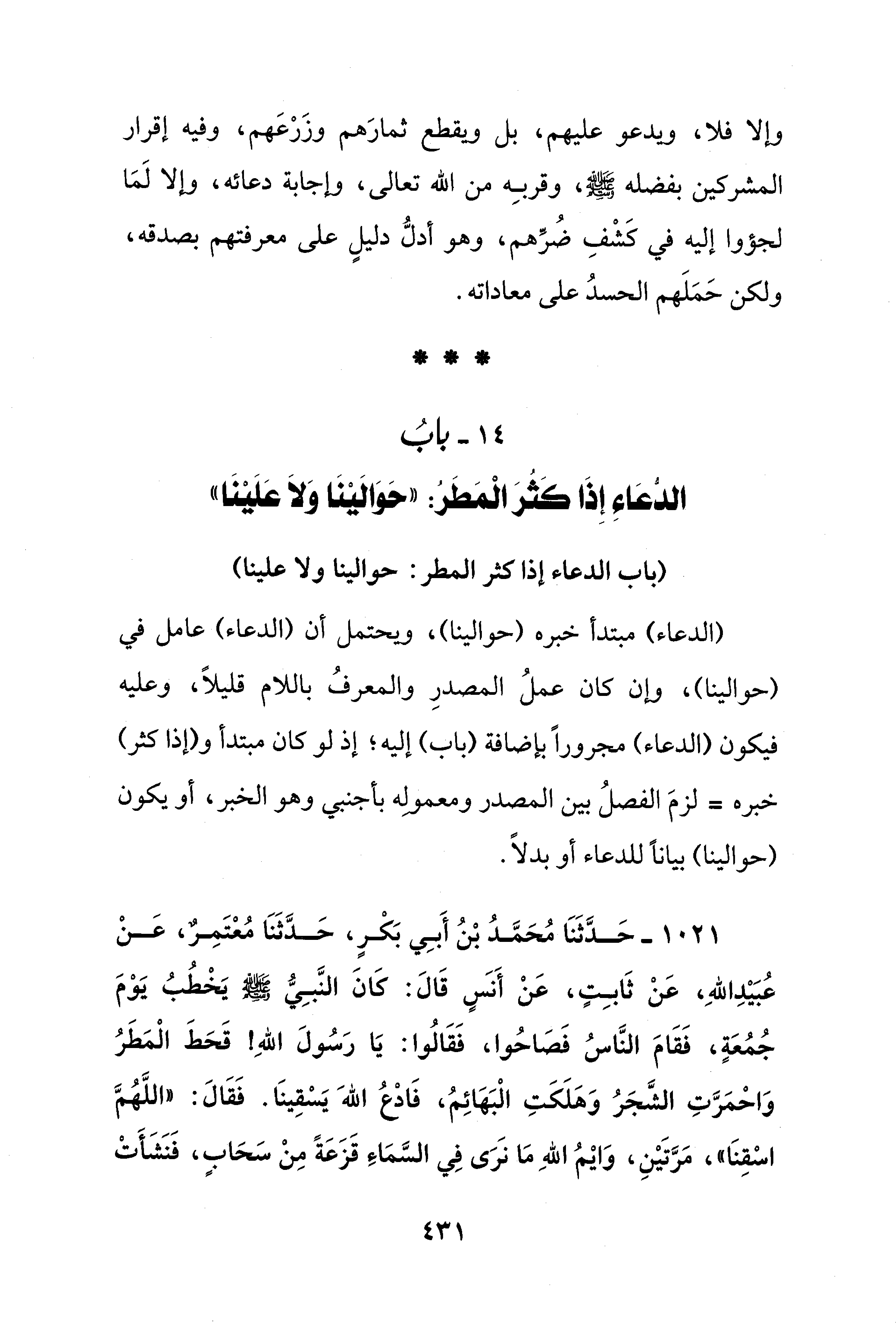 14 - بابُ الدُّعَاءِ إِذَا كَثُرَ الْمَطَرُ: "حَوَالَيْنَا وَلاَ عَلَيْنَا"