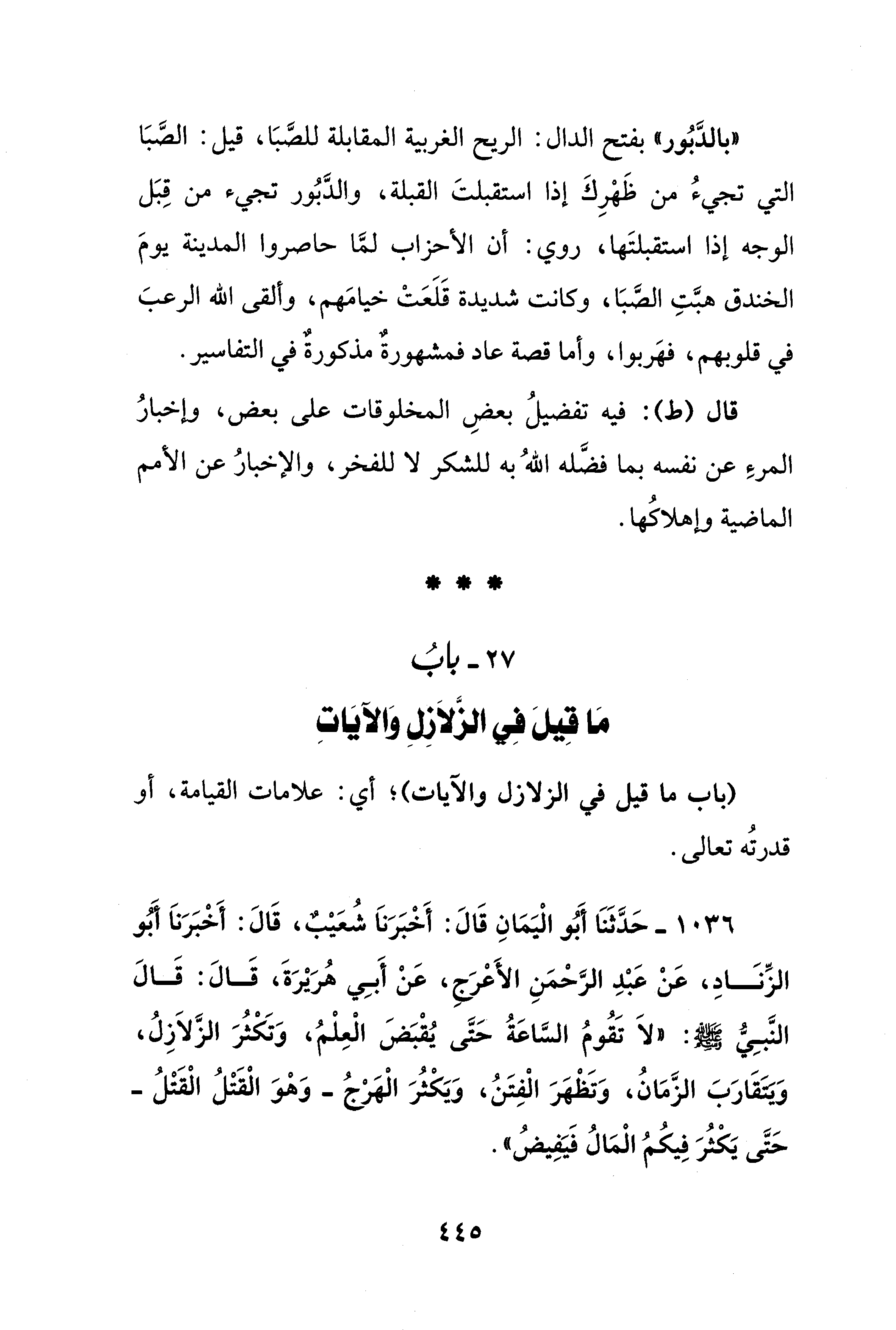 27 - بابُ مَا قِيلَ فِي الزَّلاَزِلِ وَالآيَاتِ