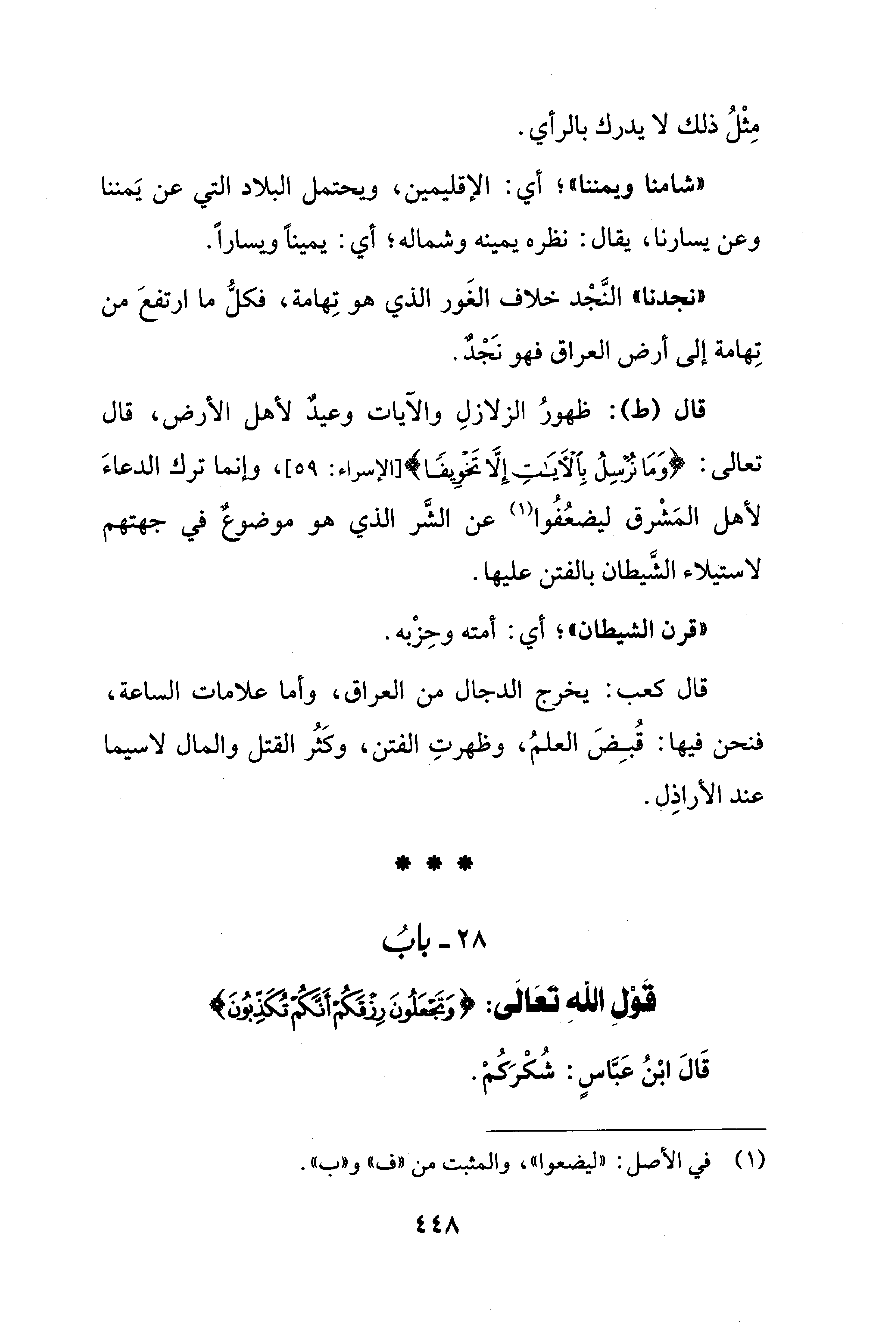 قال (ط): ظهورُ الزلازلِ والآيات وعيدٌ لأهل الأرض، قال تعالى: {وَمَا نُرْسِلُ بِالْآيَاتِ إلا تَخْوِيفًا} [الإسراء: 59]، وإنما ترك الدعاءَ لأهل المَشْرق ليضعُفُوا (¬1) عن الشَّر الذي هو موضوعٌ في جهتهم لاستيلاء الشَّيطان بالفتن عليها.