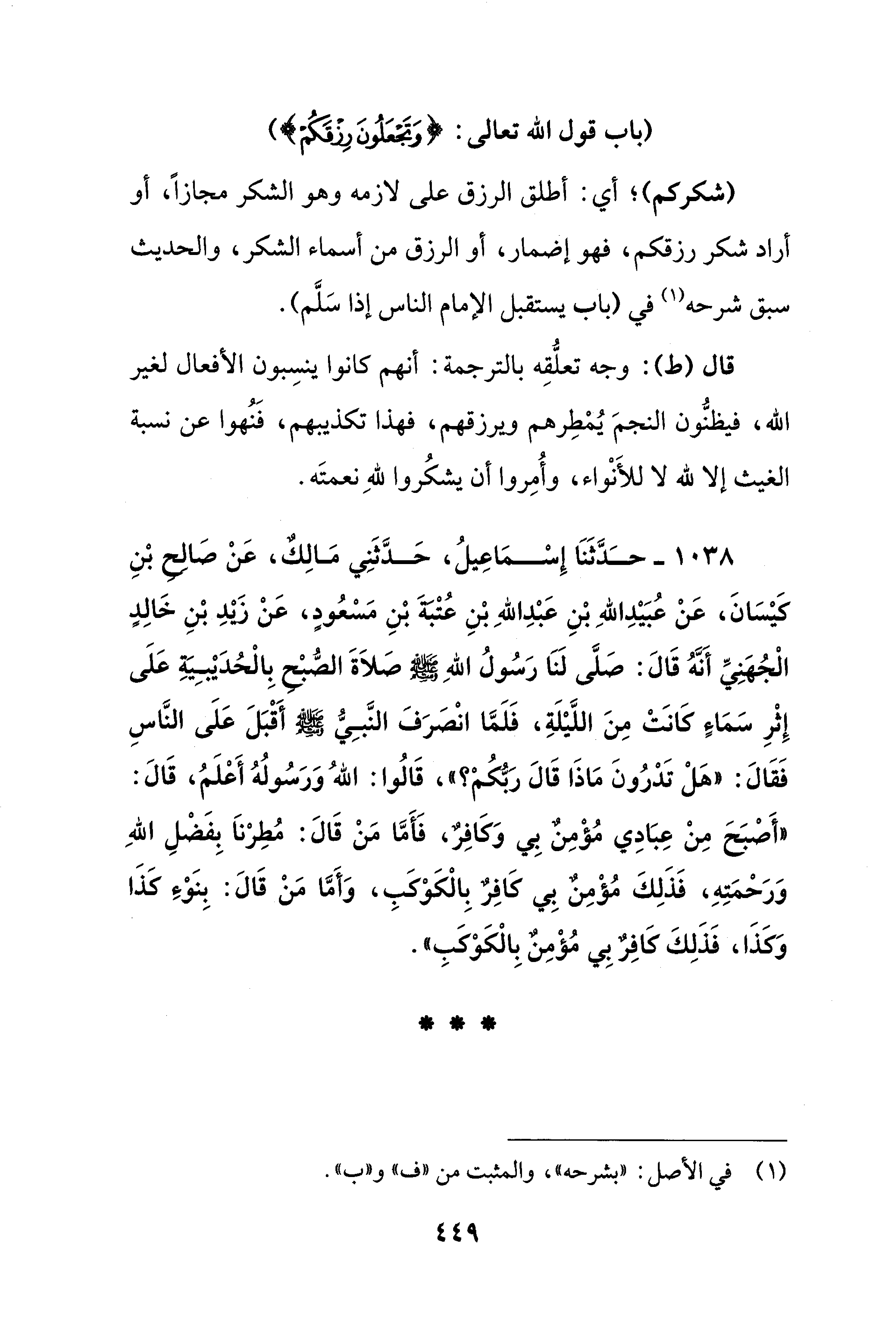 (باب قول الله تعالى: {وَتَجْعَلُونَ رِزْقَكُمْ})