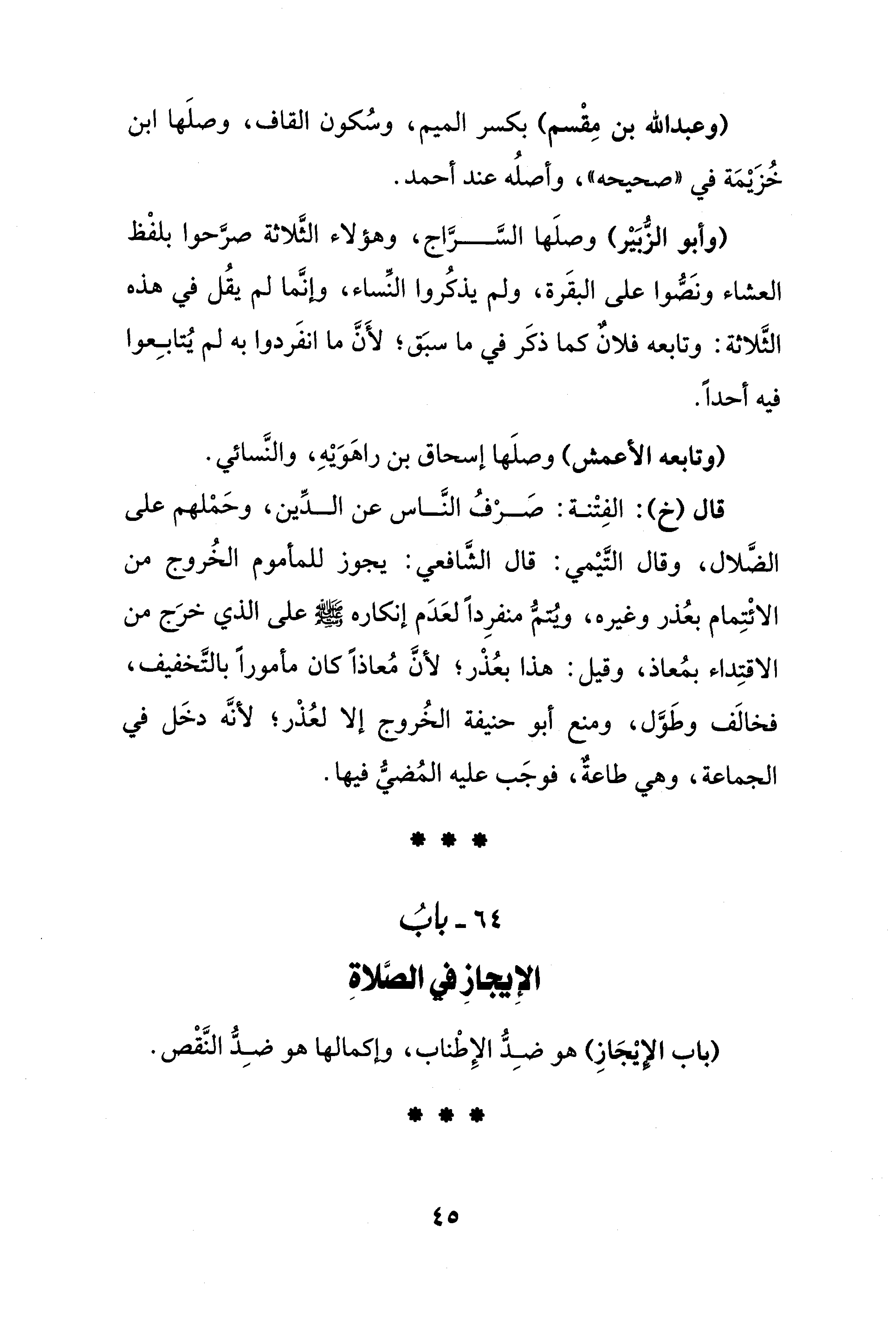 64 - بابُ الإِيجازِ في الصَّلاةِ