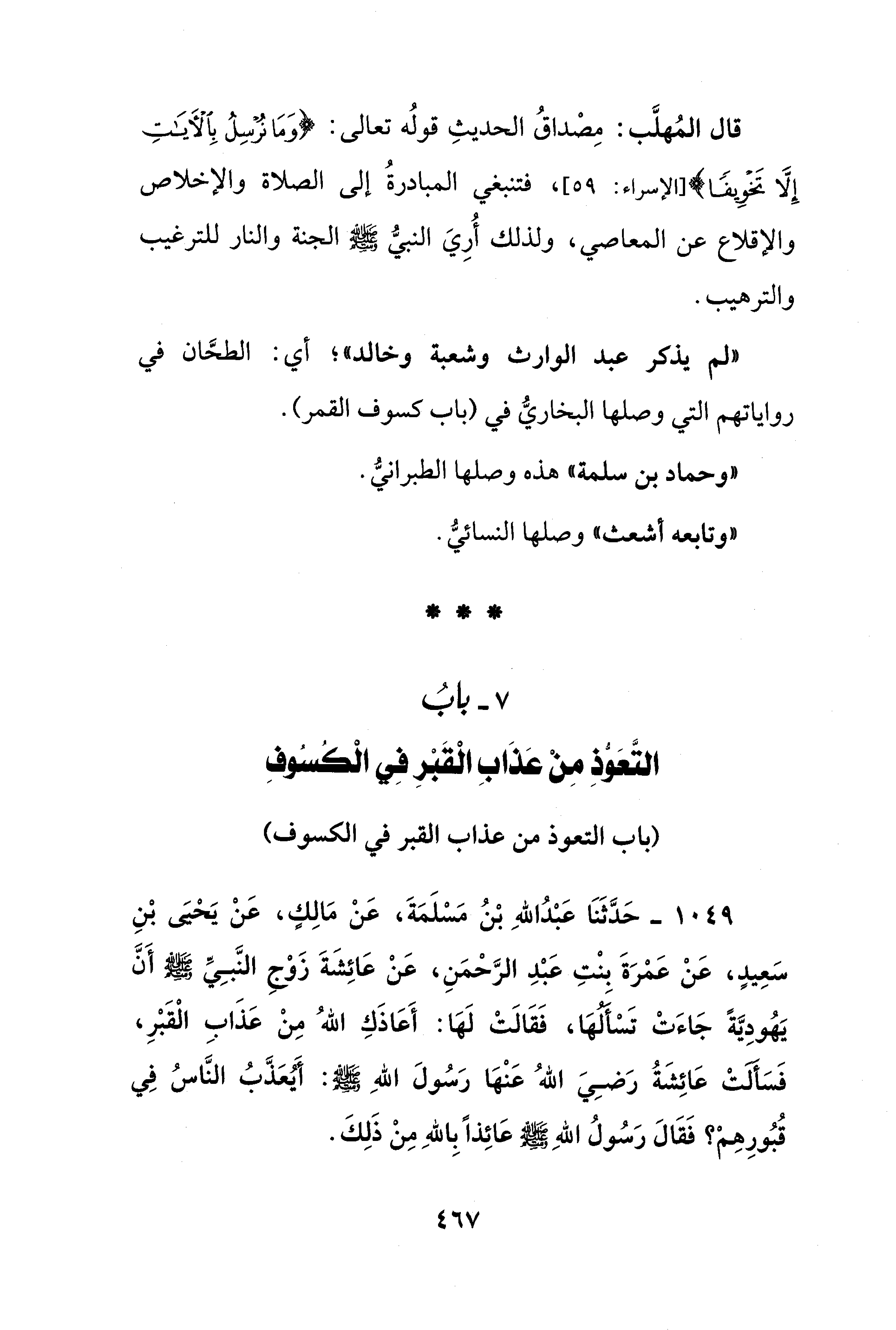 7 - بابُ التَّعَوُّذِ مِنْ عَذَابِ الْقَبْرِ فِي الْكُسُوفِ