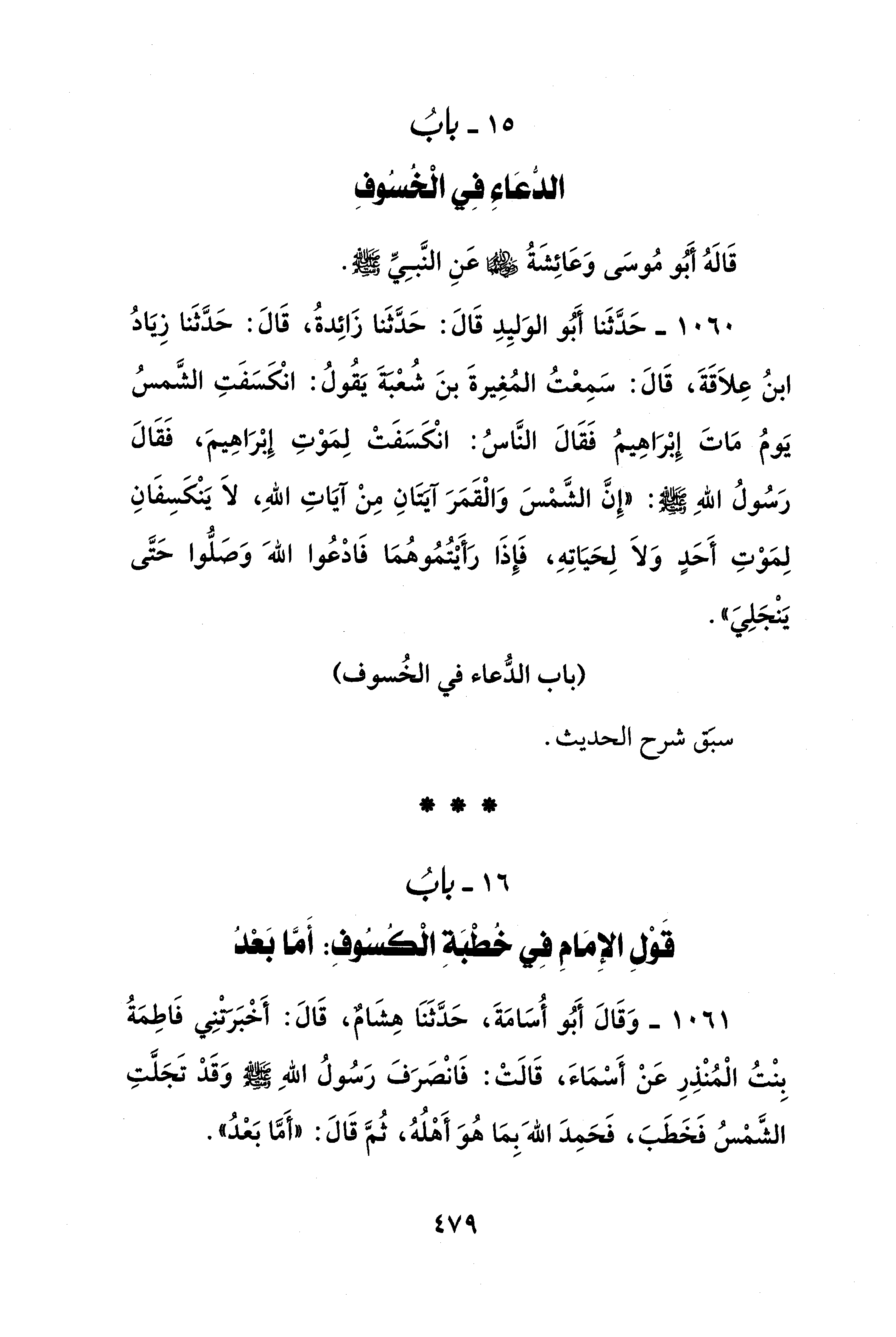 15 - بابُ الدُّعَاء فِي الْخُسُوف