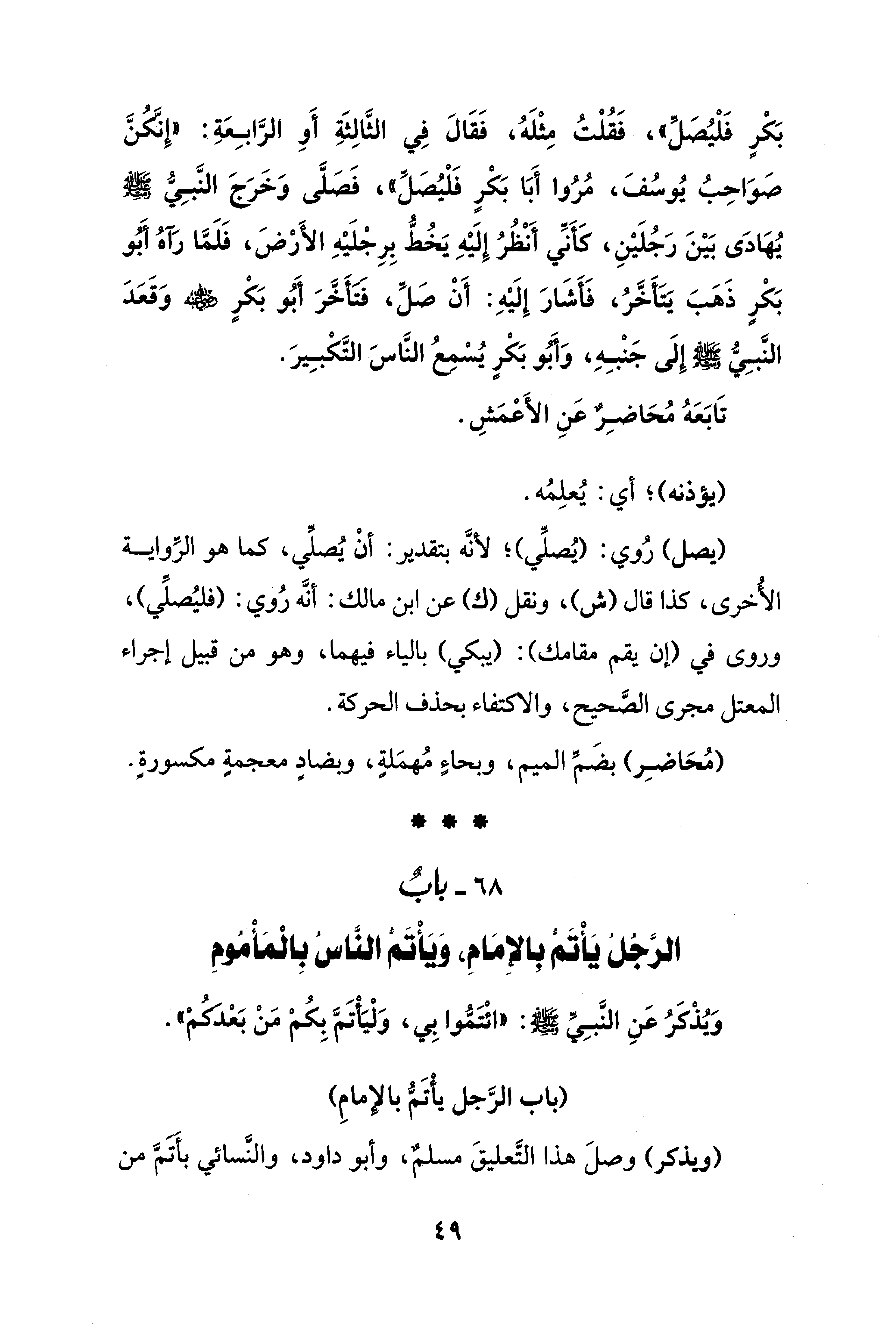 68 - بابٌ الرَّجُلُ يَأْتَمُّ بالإِمَامِ، وَيَأْتَمُّ النَّاسُ بِالْمَأْمُومِ
