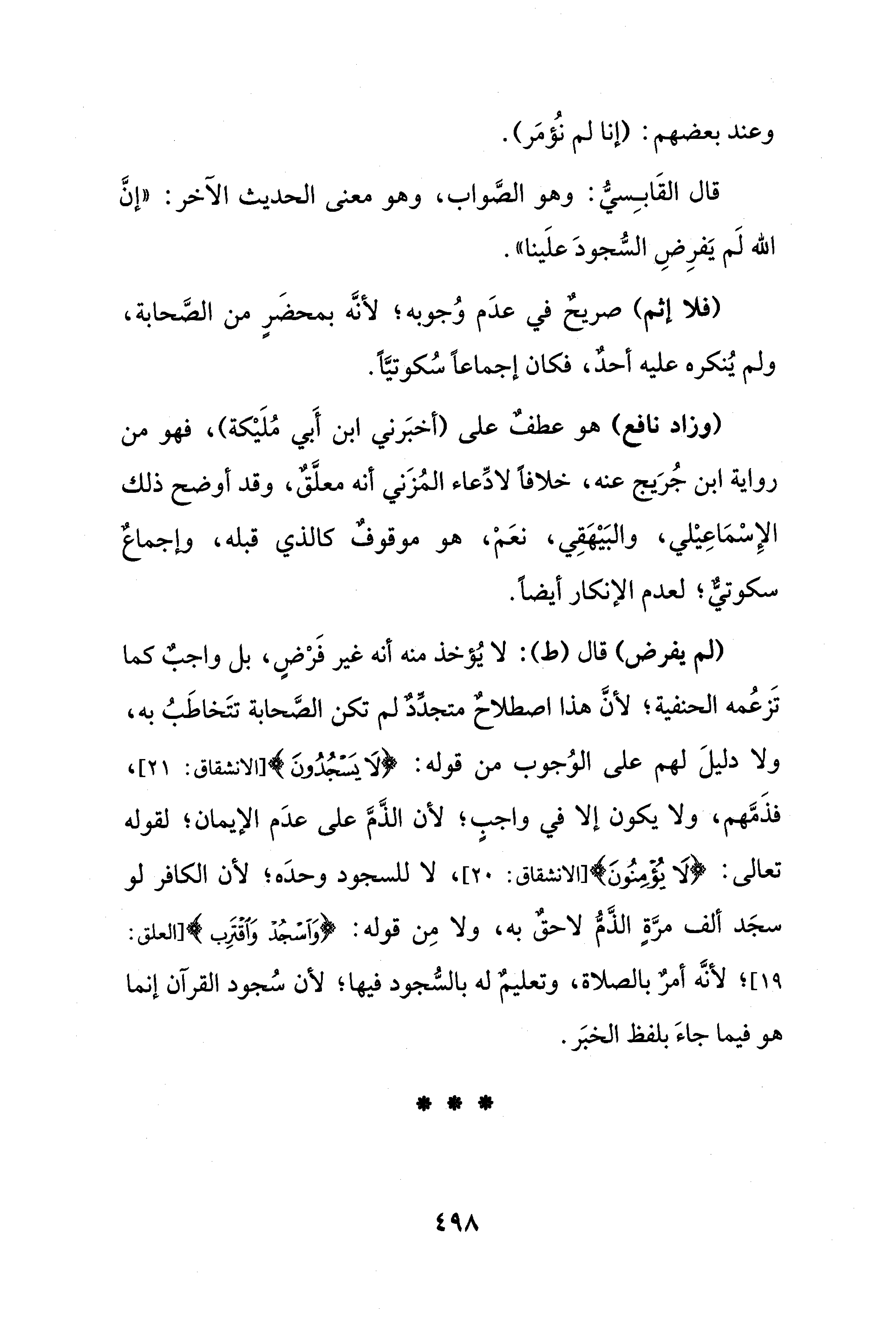 قال القَابِسيُّ: وهو الصَّواب، وهو معنى الحديث الآخر: "إنَّ الله لَم يَفرِضِ السُّجودَ علَينا".