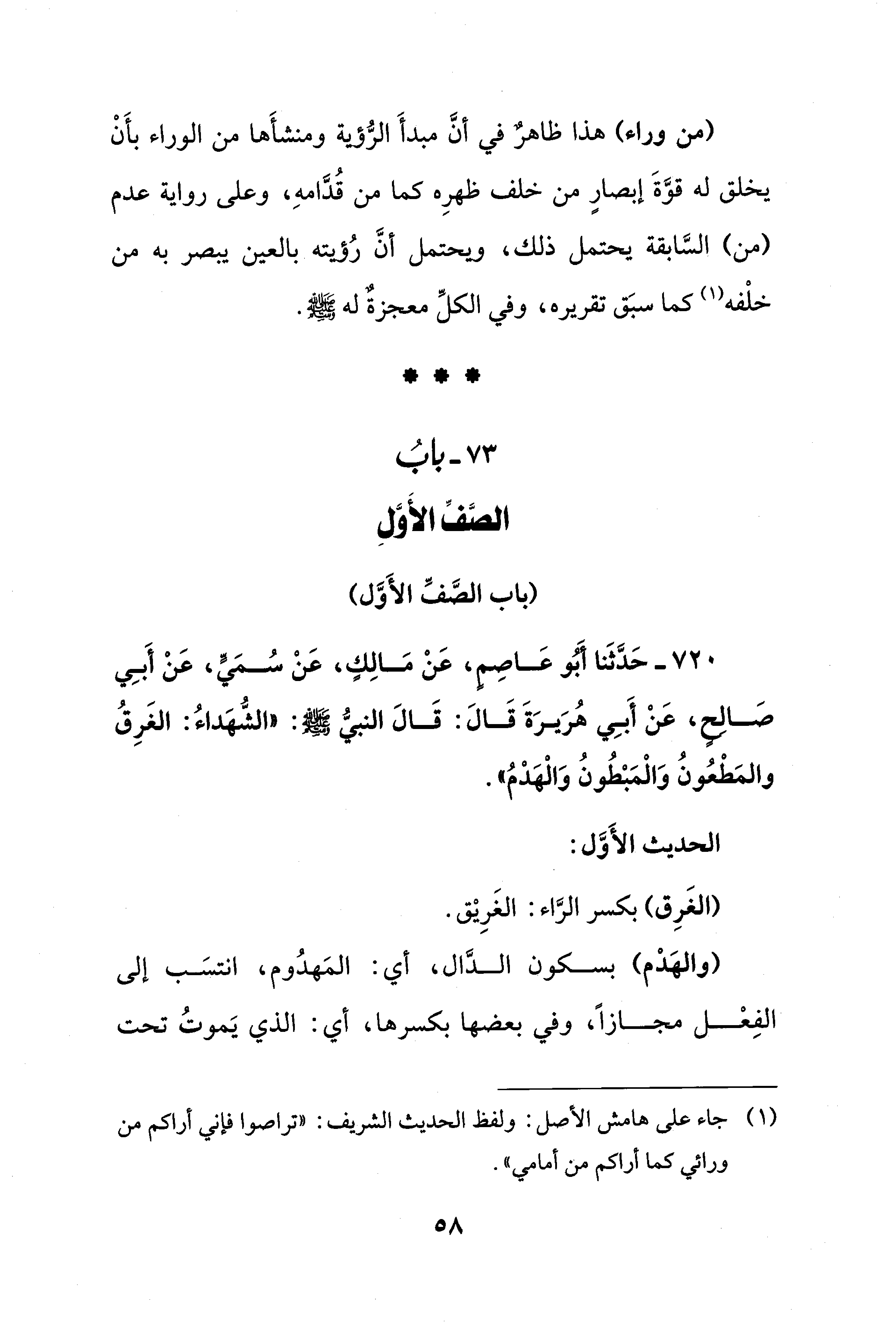 (¬1) جاء على هامش الأصل: ولفظ الحديث الشريف: "تراصوا فإني أراكم من ورائي كما أراكم من أمامي".