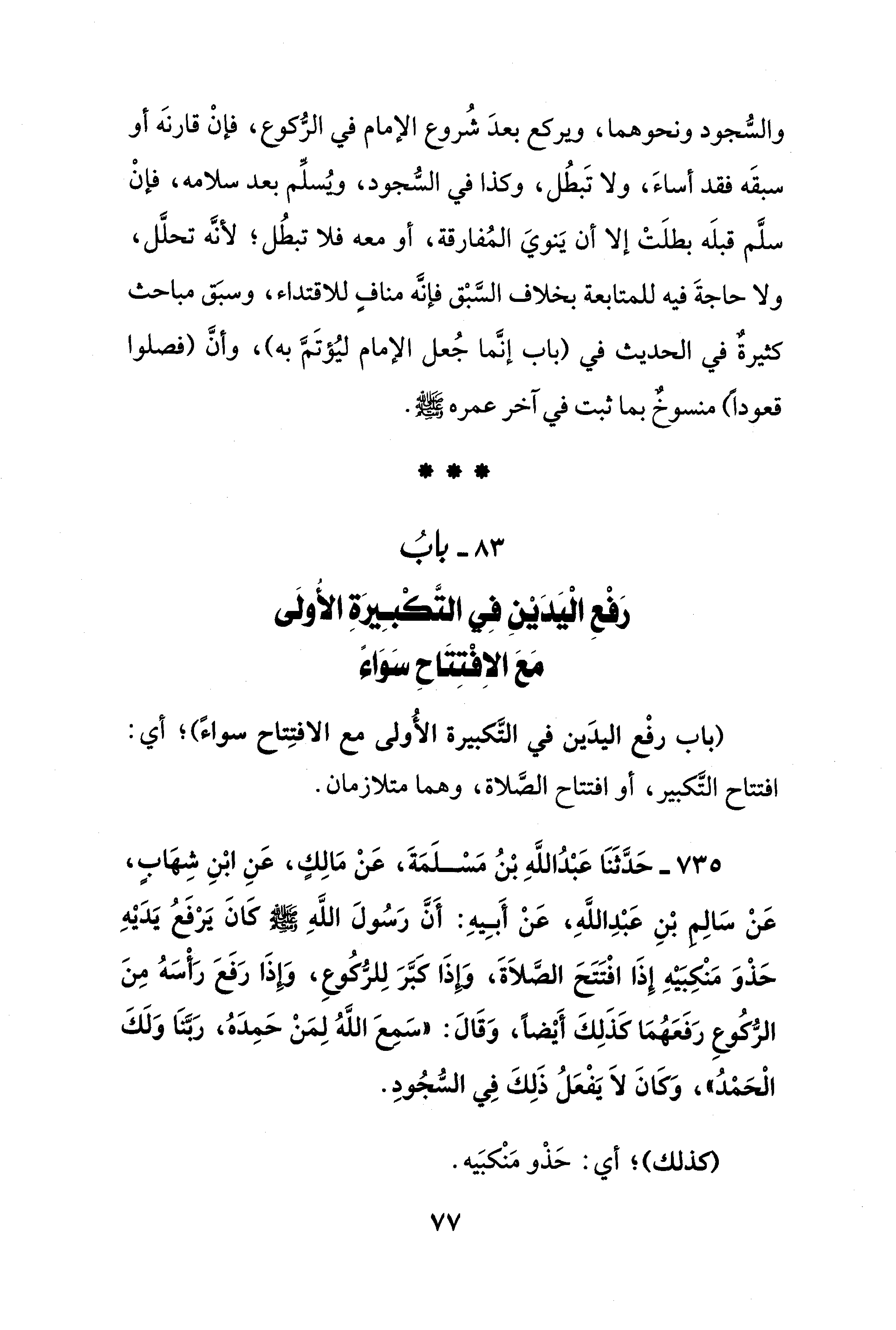 83 - بابُ رَفْعِ الْيَدَيْنِ فِي التَّكبِيرة الأُولَى مَعَ الاِفْتِتَاحِ سَوَاءً