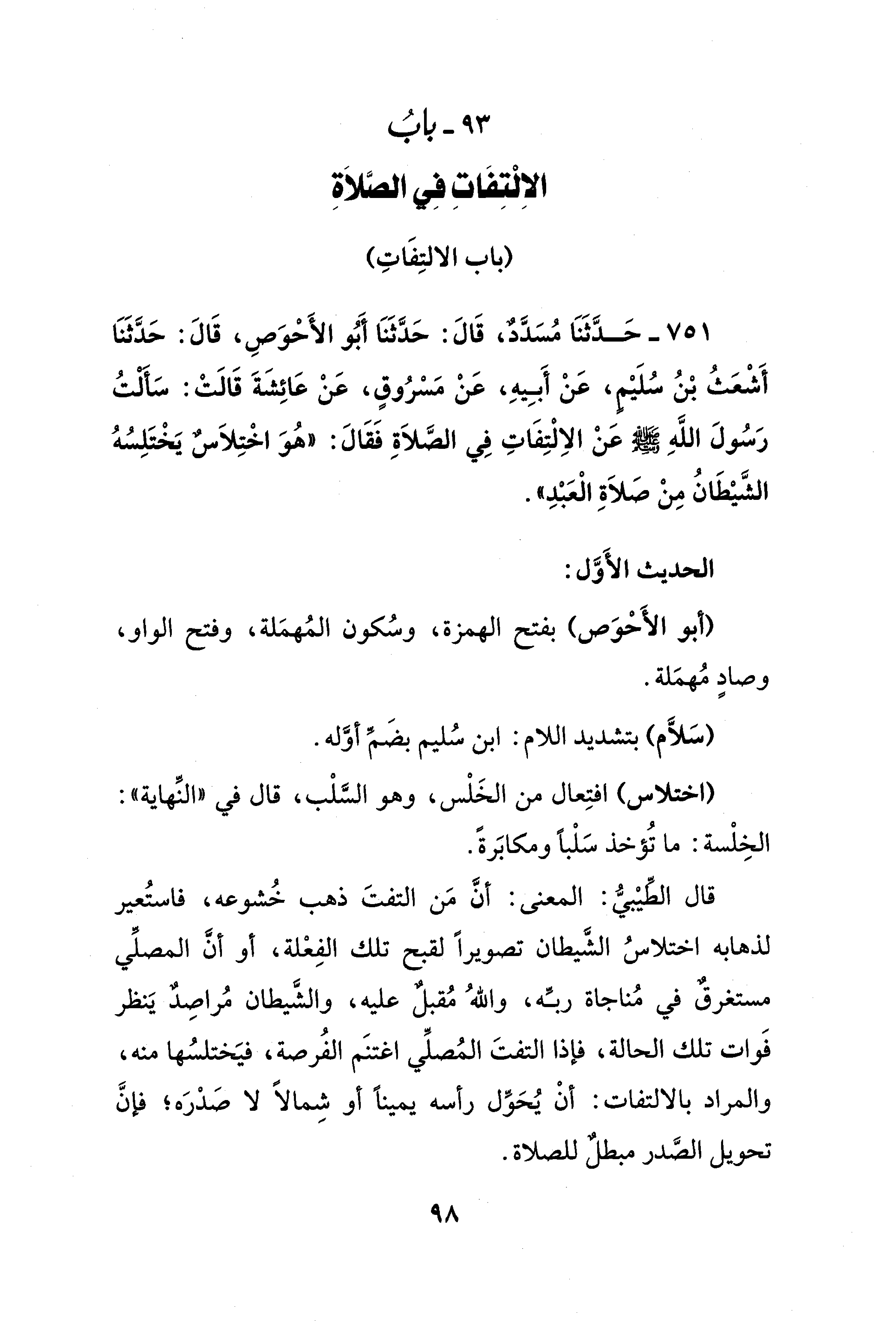 93 - بابُ الاِلْتِفَاتِ فِي الصَّلاَةِ