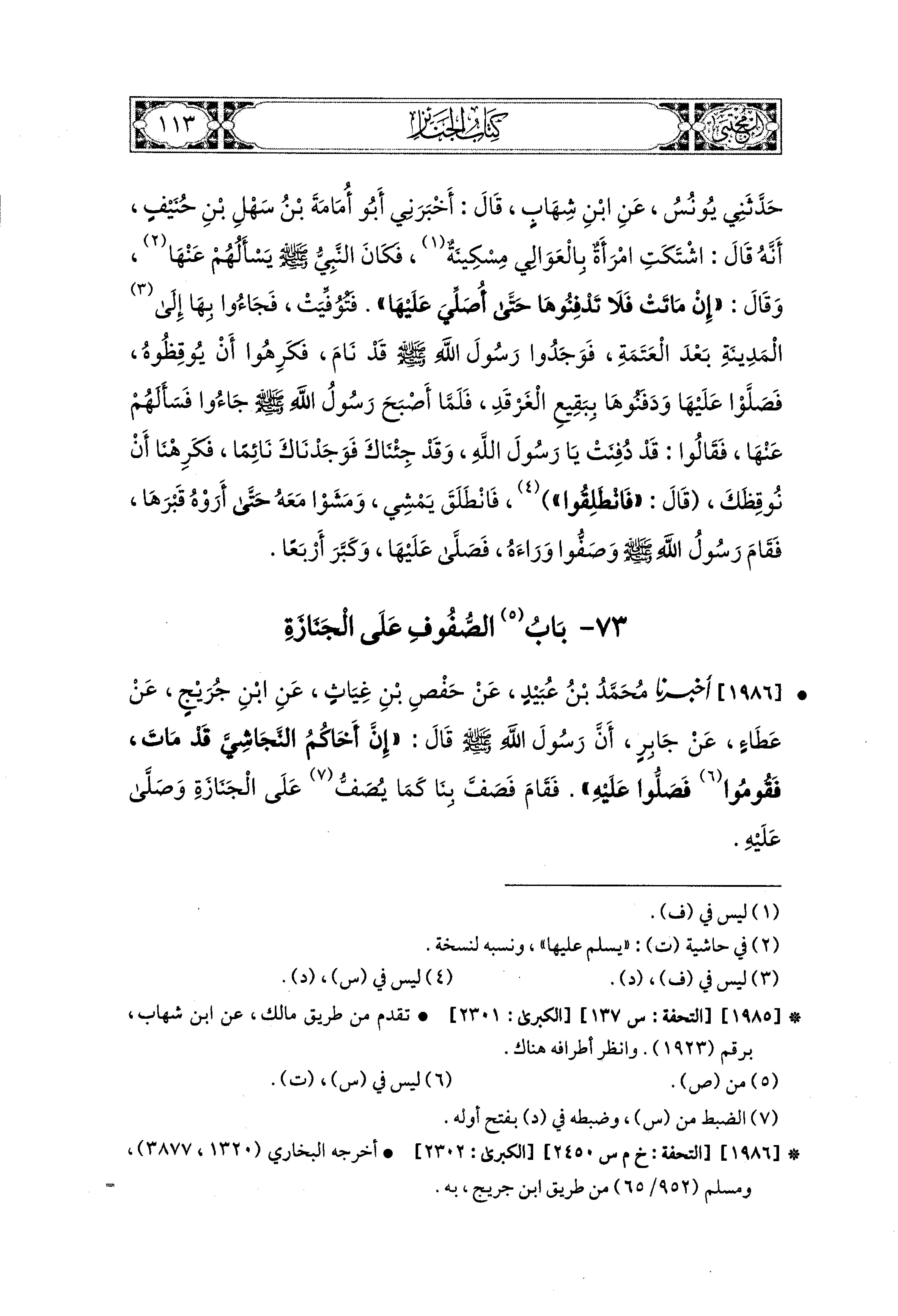 73- بَابُ الصُّفُوفُ عَلَى الجَنَازَةِ.