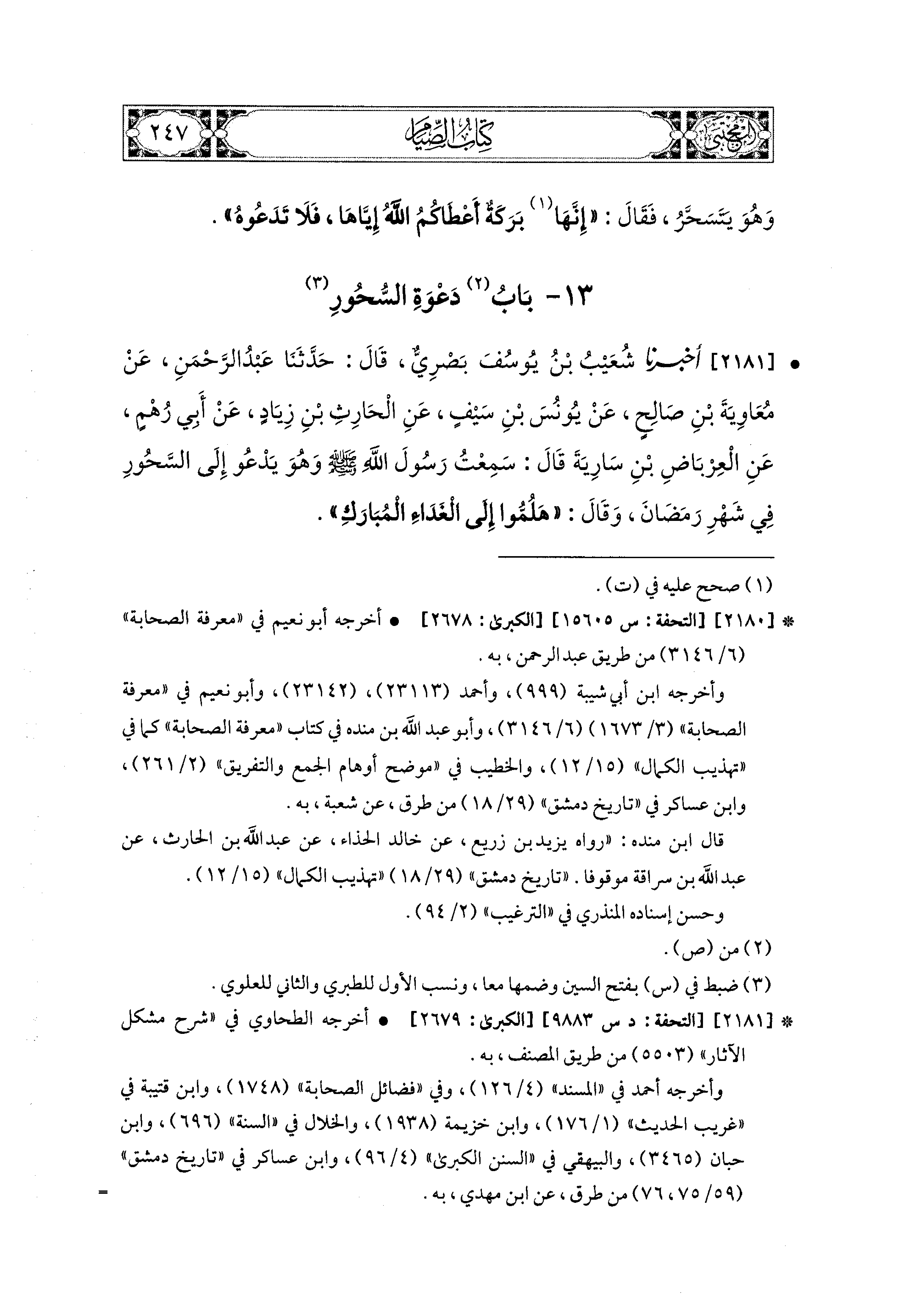 13- بَابُ دَعْوَةُ السَّحُورِ.