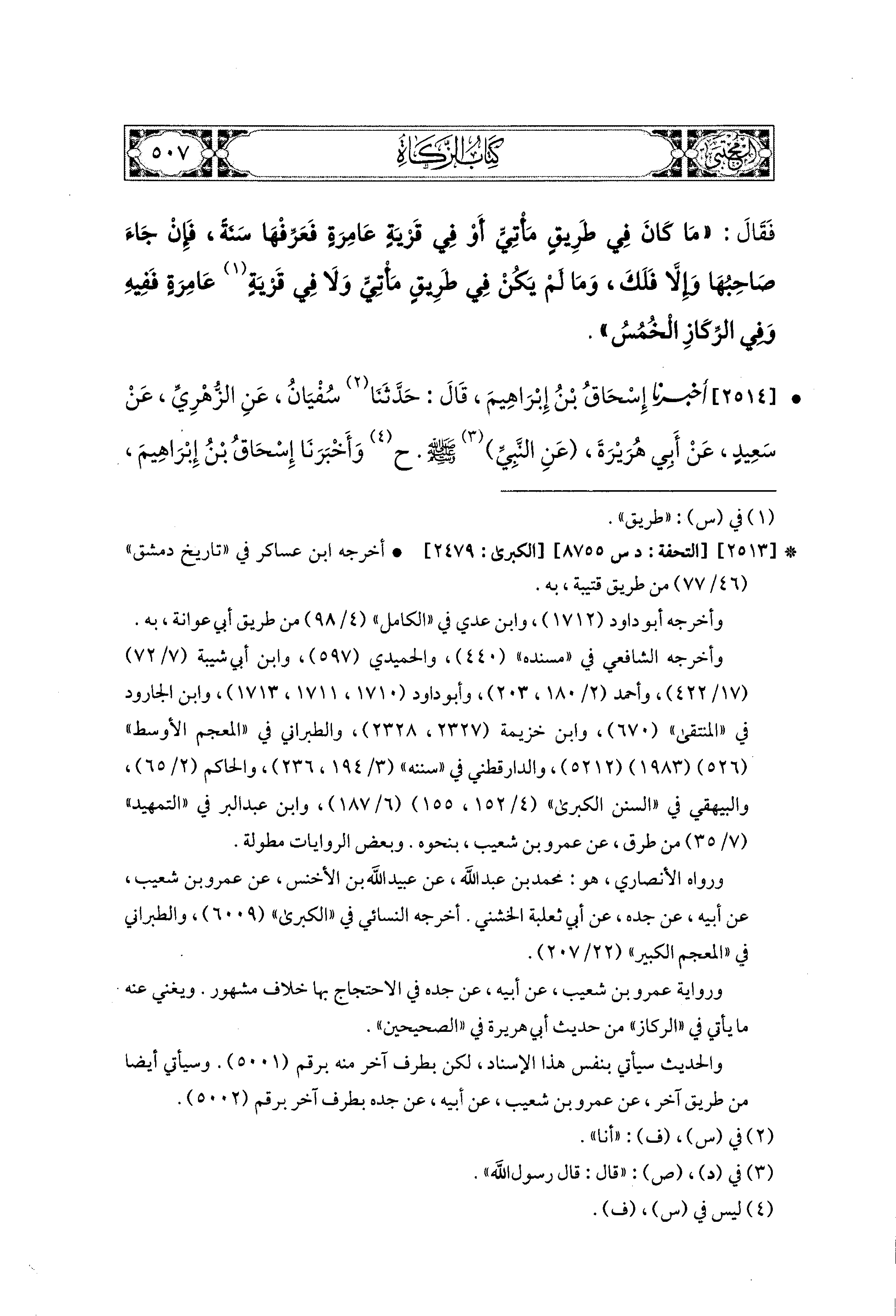 2514- أَخبَرَنا إِسحَاقُ بْنُ إِبراهِيمَ، قال: حَدثنا سُفيَانُ، عَنِ الزُّهْرِيِّ، عَن سَعيدٍ، عَن أَبي هُرَيرَةَ، عَنِ النَّبيِّ صَلى الله عَليه وسَلم (ح) وأَخبَرَنا إِسحَاقُ بْنُ إِبراهِيمَ، قَالَ: أَخبَرنا عَبدُ الرَّزَّاقِ، قال: حَدثنا مَعْمَرٌ، عَنِ الزُّهْرِيِّ، عَن سَعيدٍ، وَأَبي سَلَمَةَ، عَن أَبي هُرَيرَةَ، عَنِ النَّبيِّ صَلى الله عَليه وسَلم قَالَ: العَجْمَاءُ جَرْحُهَا جُبَارٌ، وَالبِئْرُ جُبَارٌ، وَالمَعْدِنُ جُبَارٌ، وَفِي الرِّكَازِ الخُمُسُ.