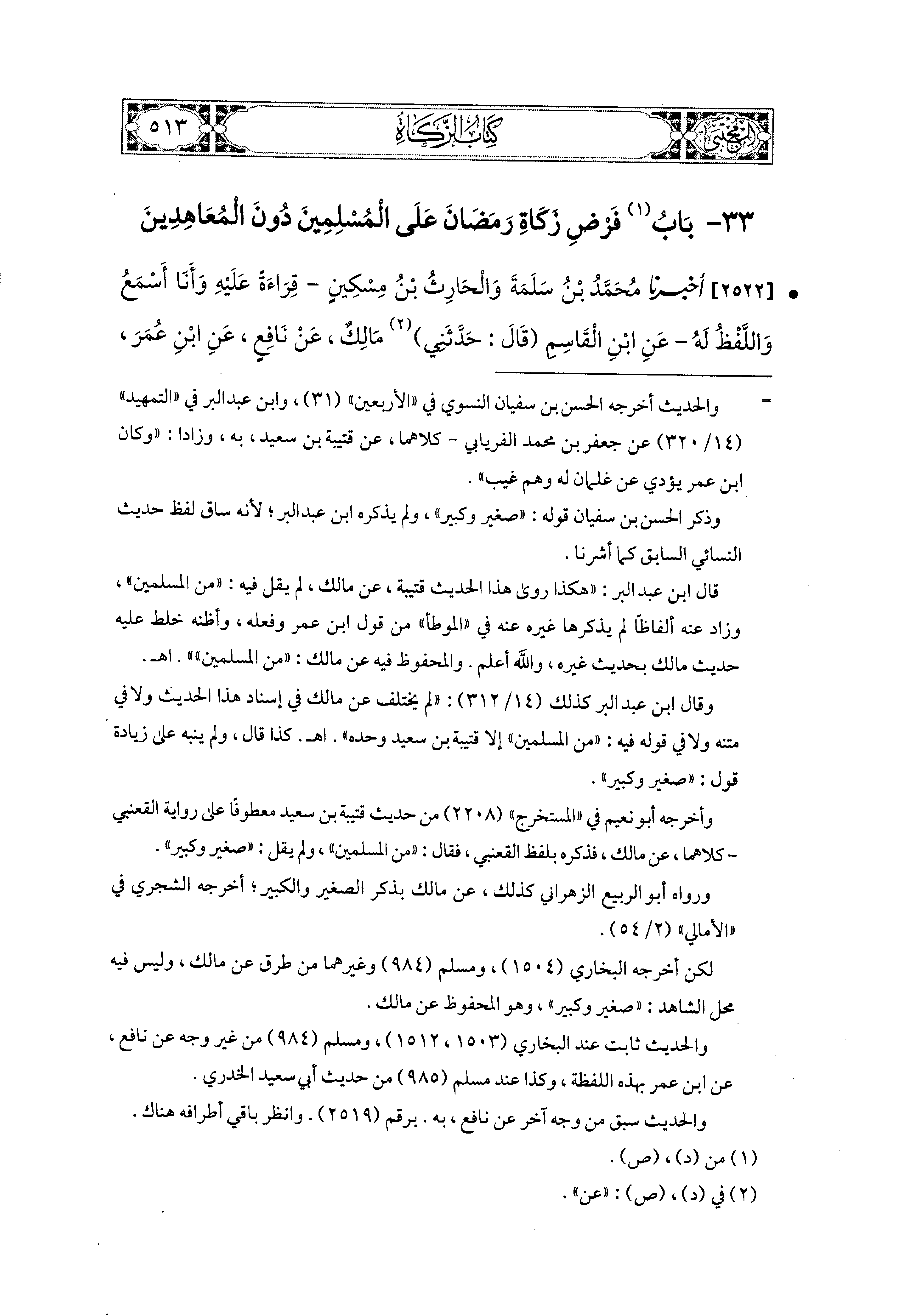 33- بَابُ فَرْضُ زَكَاةِ رَمَضَانَ عَلَى المُسْلِمينَ دُونَ المُعَاهِدِينَ.