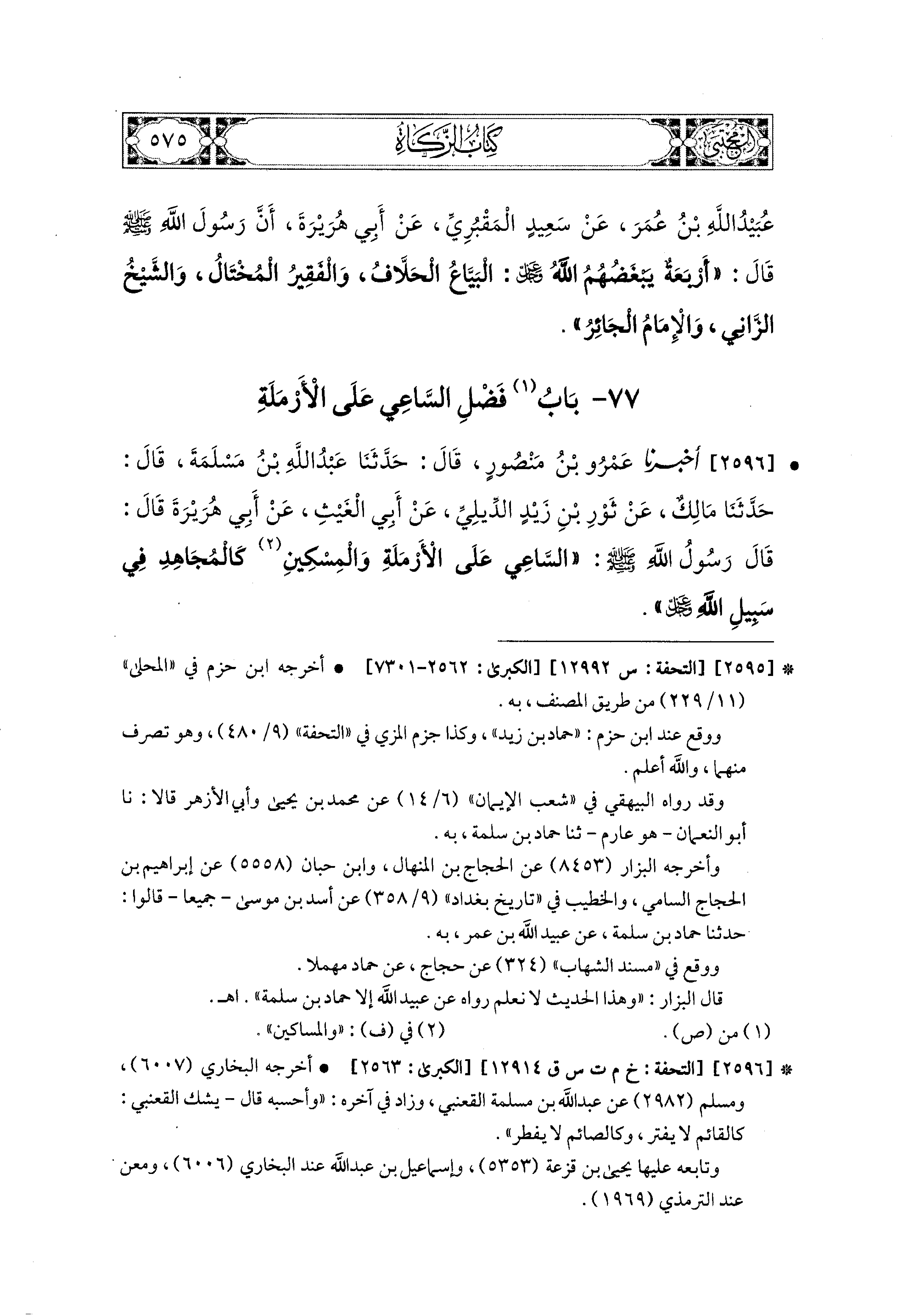 2596- أَخبَرَنا عَمْرُو بْنُ مَنْصُورٍ، قال: حَدثنا عَبدُ اللهِ بْنُ مَسْلَمَةَ، قال: حَدثنا مَالِكٌ، عَن ثَوْرِ بْنِ زَيْدٍ الدِّيْلِيِّ، عَن أَبي الغَيْثِ، عَن أَبي هُرَيرَةَ، قَالَ: قَالَ رَسُولُ اللهِ صَلى الله عَليه وسَلم: السَّاعِي عَلَى الأَرْمَلَةِ، وَالمِسكينِ كَالمُجَاهِدِ فِي سَبِيلِ اللهِ عَزَّ وَجَلَّ.