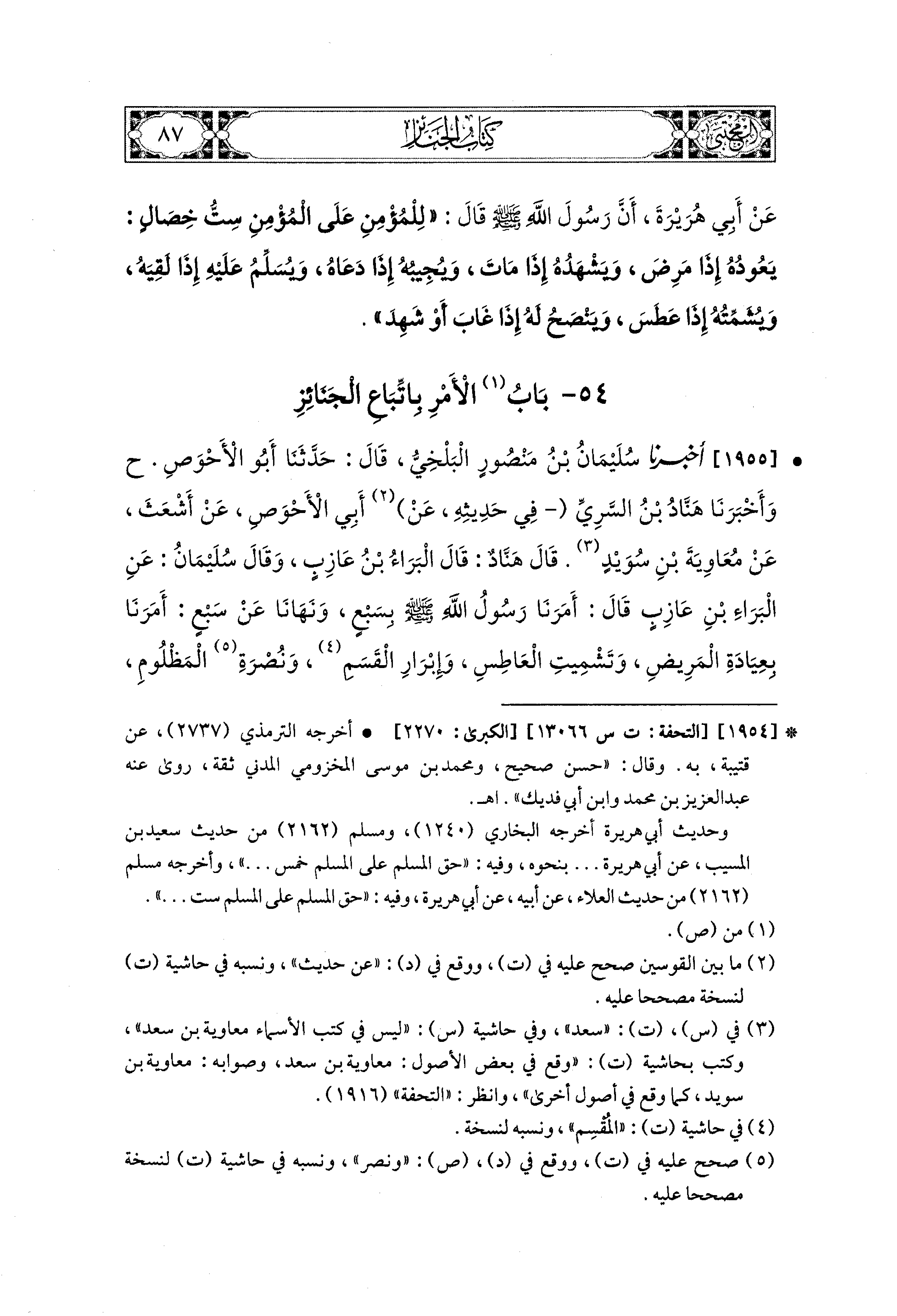 54- بَابُ الأَمْرُ بِاتِّبَاعِ الجَنَائِزِ.