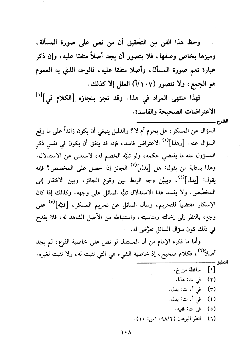 السؤال عن المسكر، هل يحرم أم لا؟ والدليل ينبغي أن يكون زائدًا على ما وقع السؤال عنه. [وهذا] الاعتراض فاسد، فإنه قد يتفق أن يكون في نفس ذكر المسؤول عنه ما يقتضي حكمه، ولو تنبه الخصم له، لاستغنى عن الاستدلال. وهذا بمثابة من يقول: هل [يدل] الجائز إذا حصل على المخصص؟ فإنه يقول: [يدل]، ويبين وجه الربط بين وقوع الجائز، وبين الافتقار إلى المخصِّص. ولا يفسد هذا الاستدلال تنبه السائل على وجهه. وكذلك إذا كان الإسكار مقتضيًا للتحريم، وسأل السائل عن تحريم المسكر، [فنبه] على وجه، بالنظر إلى إخالته ومناسبته، واستنباطه من الأصل الشاهد له، فلا يقدح في ذلك كون سؤال السائل تعرض له.