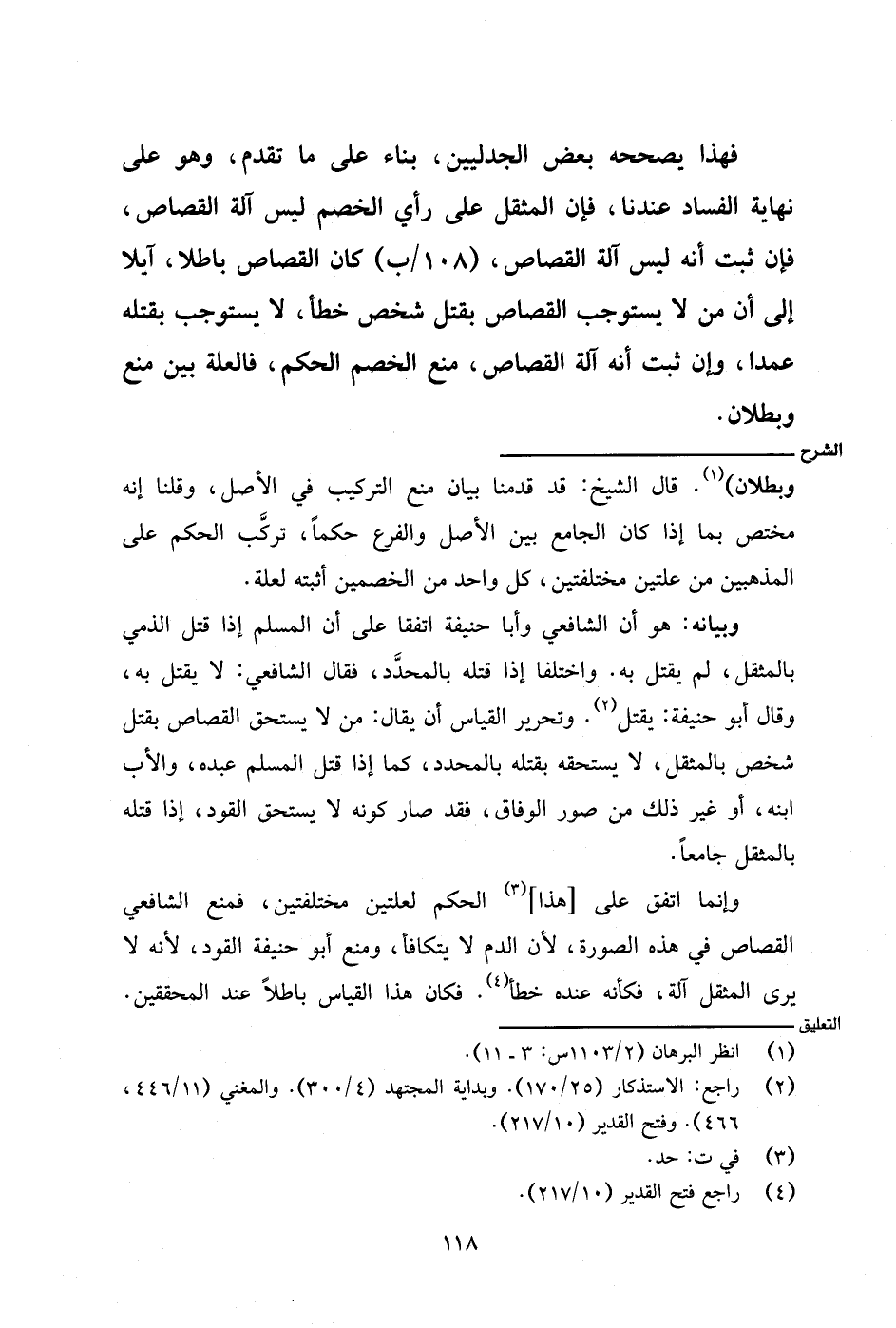 وإنما اتفق على [هذا] الحكم لعلتين مختلفتين، فمنع الشافعي القصاص في هذه الصورة، لأن الدم لا يتكافأ، ومنع أبو حنيفة القود، لأنه لا يرى المثقل آلة، فكأنه عنده خطأ. فكان هذا القياس باطلًا عند المحققين.