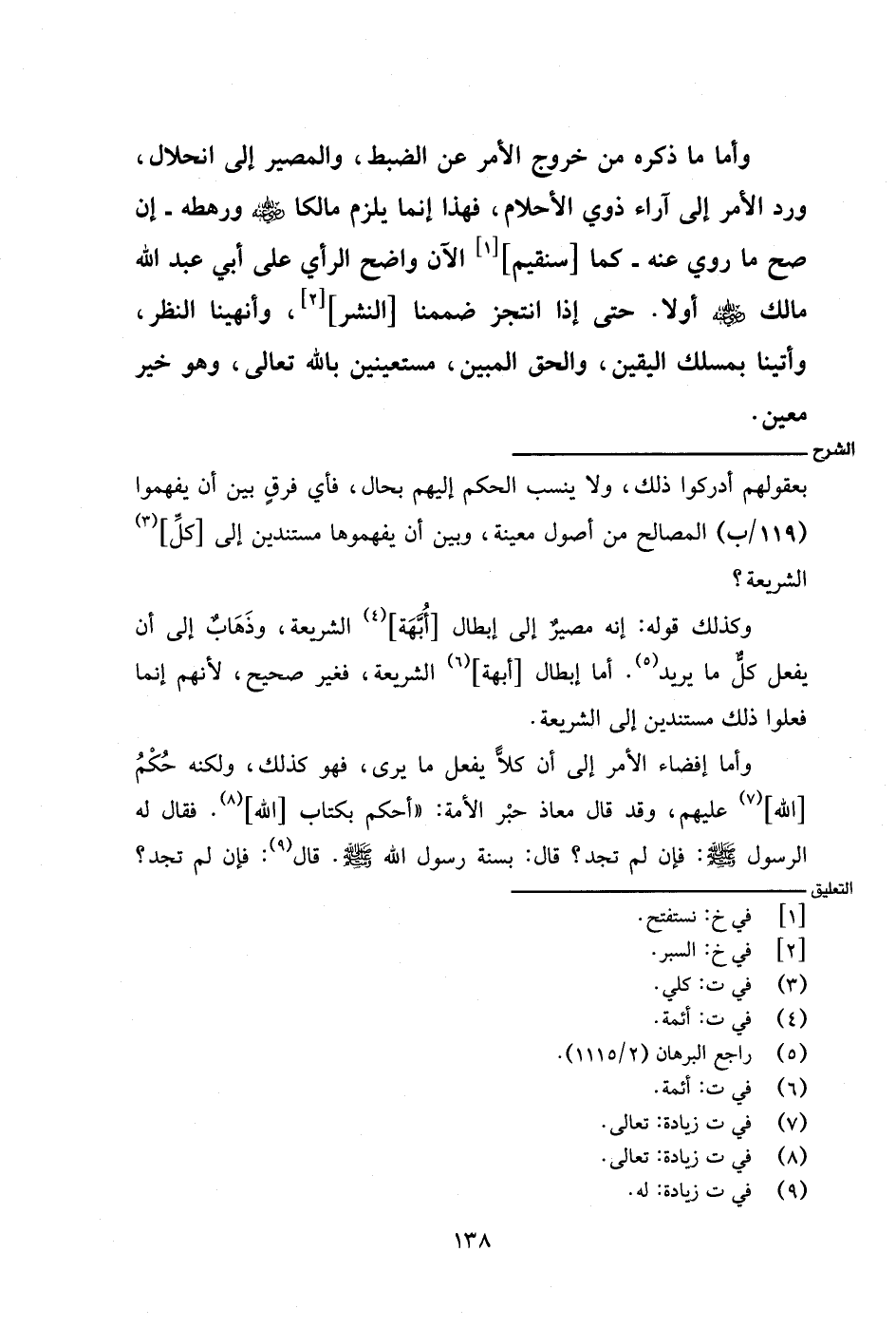 وكذلك قوله: إنه مصير إلى إبطال [أبهة] الشريعة، وذهاب إلى أن يفعل كل ما يريد. أما إبطال [أبهة] الشريعة، فغير صحيح، لأنهم إنما فعلوا ذلك مستندين إلى الشريعة.