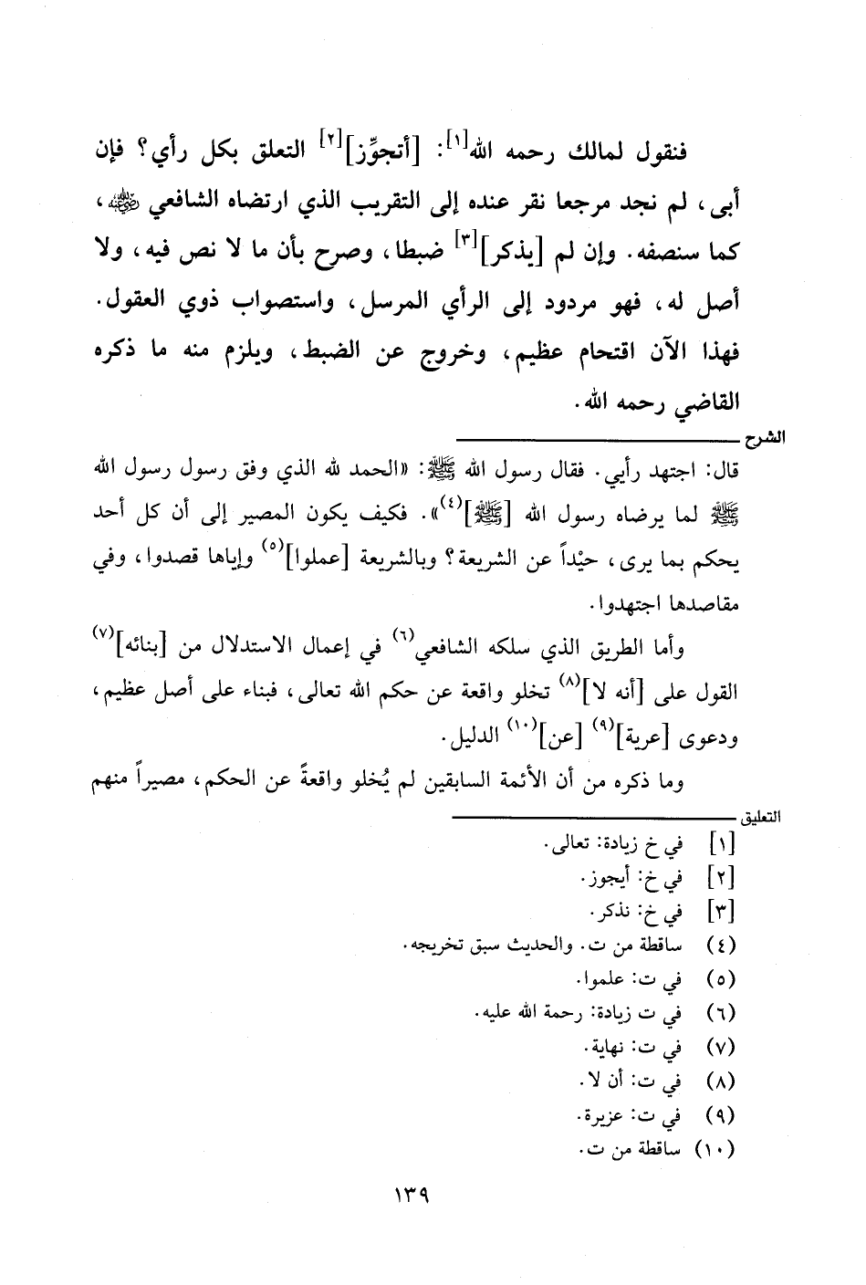 قال: أجتهد رأيي. فقال رسول الله - صلى الله عليه وسلم -: "الحمد لله الذي وفق رسول رسول الله - صلى الله عليه وسلم - لما يرضاه رسول الله [- صلى الله عليه وسلم -] ". فكيف يكون المصير إلى أن كل واحد يحكم بما يرى، حيدًا عن الشريعة؟ وبالشريعة [عملوا] وإياها قصدوا، وفي مقاصدها اجتهدوا.