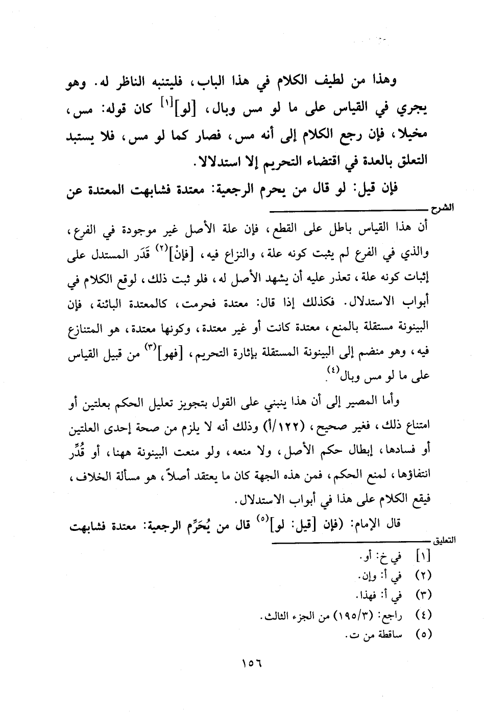 قال الإمام: (فإن [قيل: لو] قال من يحرم الرجعية: معتدة فشابهت