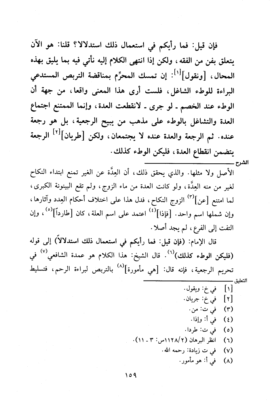 قال الإمام: (فإن قيل: فما رأيكم في استعمال ذلك استدلالًا) إلى قوله (فليكن الوطء كذلك). قال الشيخ: هذا الكلام هو عمدة الشافعي في تحريم الرجعية، فغنه قال: [هي مأمورة] بالتربص لبراءة الرحم، فتسليط