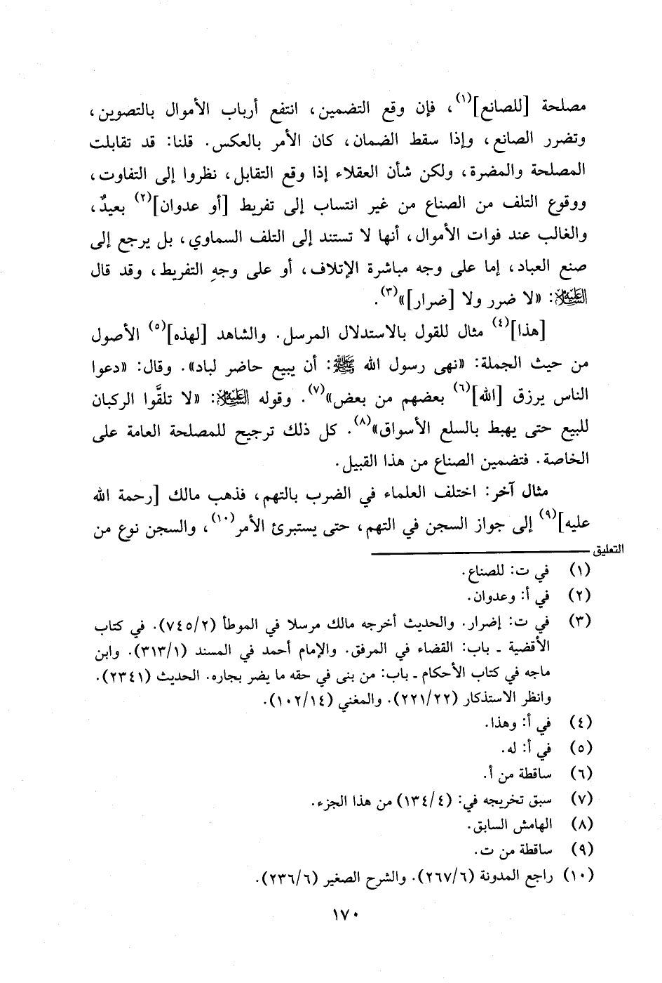[هذا] مثال للقول بالاستدلال المرسل. والشاهد [لهذه] الأصول من حيث الجملة: "نهى رسول الله - صلى الله عليه وسلم -: أن يبيع حاضر لباد". وقال: "دعوا الناس يرزق [الله] بعضهم من بعض". وقوله - عليه السلام -: "لا تلقوا الركبان للبيع حتى يهبط بالسلع الأسواق". كل ذلك ترجيح للمصلحة العامة على الخاصة. فتضمين الصناع من هذا القبيل.