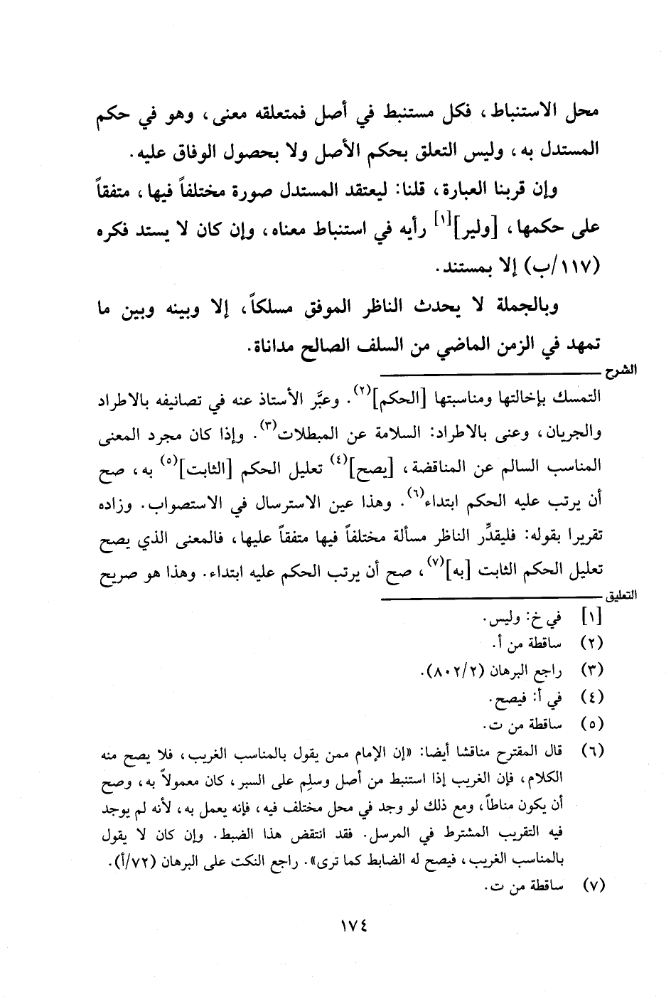 التمسك بإخالتها ومناسبتها [الحكم]. وعبر الأستاذ عنه في تصانيفه بالاطراد والجريان، وعنى بالاطراد: السلامة عن المبطلات. وإذا كان مجرد المعنى المناسب السالم عن المناقضة، [يصح] تعليل الحكم [الثابت] به، صح أن يترتب عليه الحكم ابتداءً. وهذا عين الاسترسال في الاستصواب. وزاده تقريرًا بقوله: فليقدر الناظر مسألة مختلفًا فيها متفقًا عليها، فالمعنى الذي يصح تعليل الحكم الثابت [به]، صح أن يرتب الحكم عليه ابتداءً. وهذا هو صريح