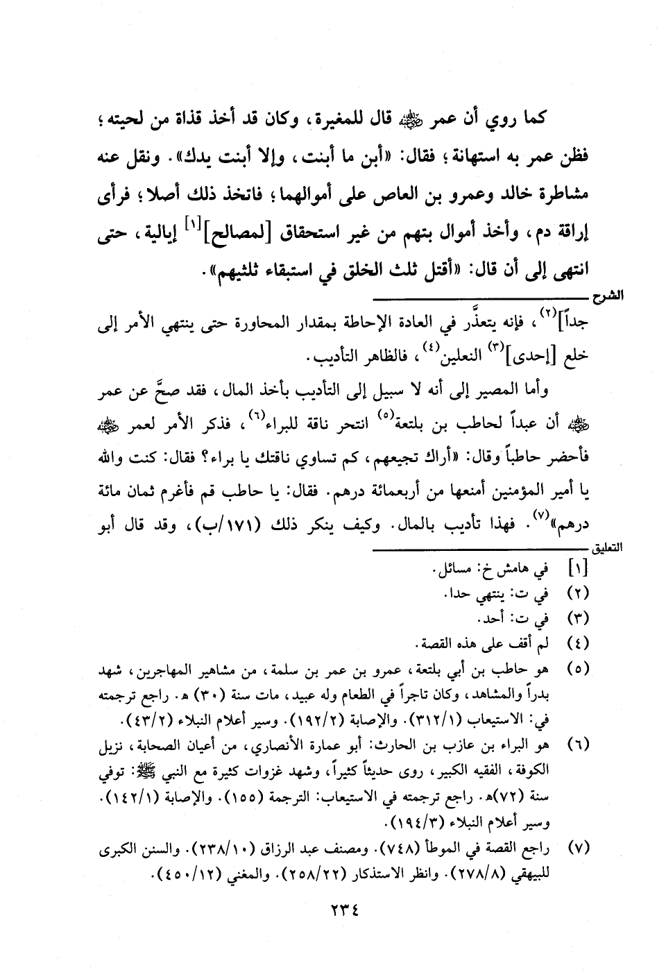 وأما المصير إلى أنه لا سبيل إلى التأديب بأخذ المال، فقد صح عن عمر - رضي الله عنه - أن عبدًا لحاطب بن بلتعة انتحر ناقة للبراء، فذكر الأمر لعمر - رضي الله عنه - فأحضر حاطبًا وقال: "أراك تجيعهم، كم تساوي ناقتك يا براء؟ فقال: كنت والله يا أمير المؤمنين أمنعها من أربعمائة درهم. فقال: يا حاطب قم فأغرم ثمان مائة درهم". فهذا تأديب بالمال. وكيف ينكر ذلك) ١٧١/ ب)، وقد قال أبو