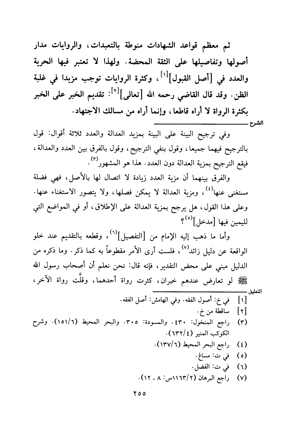 وفي ترجيح البينة على البينة بمزيد العدالة والعدد ثلاثة أقوال: قول بالترجيح فيهما جميعًا، وقول بنفي الترجيح، وقول بالفرق بين العدد والعدالة، فيقع الترجيح بمزية العدالة دون العدد. هذا هو المشهور.