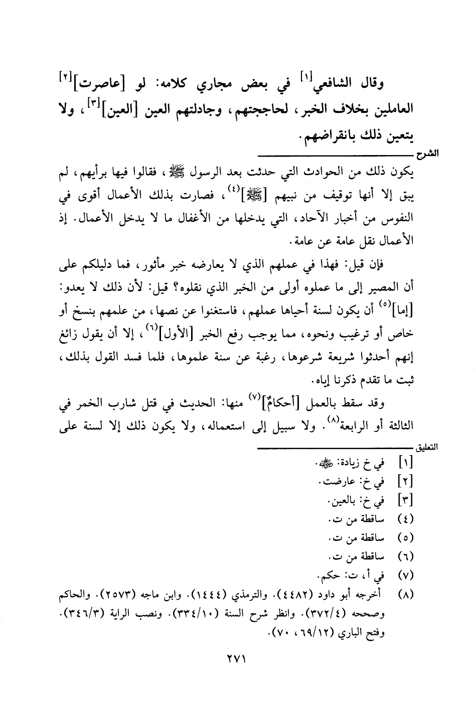 وقد سقط بالعمل [أحكام] منها: الحديث في قتل شارب الخمر في الثالثة أو الرابعة. ولا سبيل إلى استعماله، ولا يكون ذلك إلا لسنة على