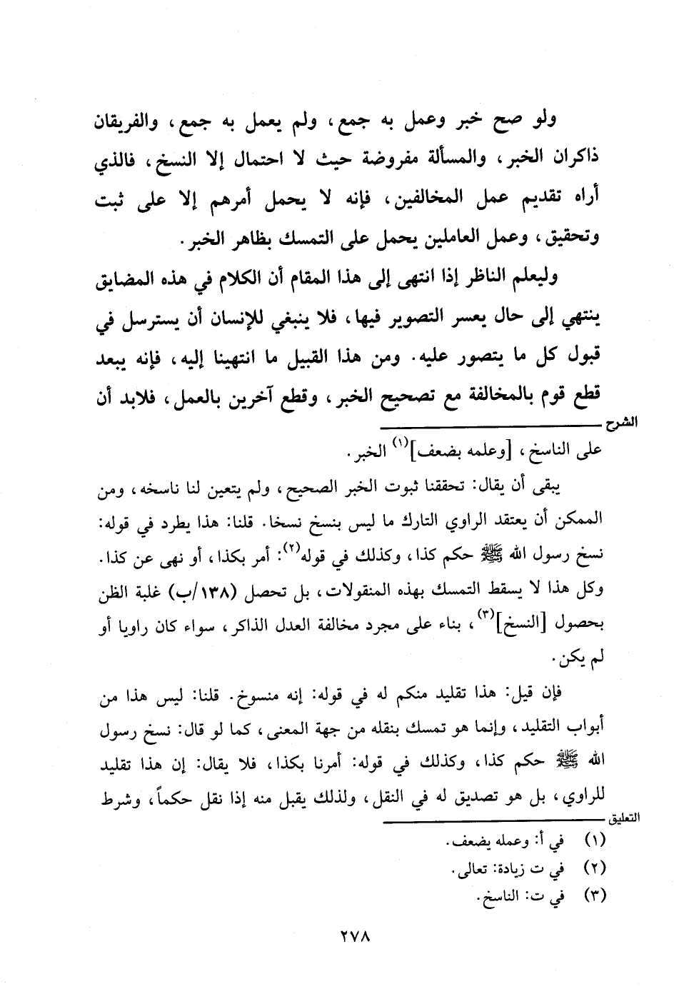 يبقى أن يقال: تحققنا ثبوت الخبر الصحيح، ولم يتعين لنا ناسخه، ومن الممكن أن يعتقد الراوي التارك ما ليس بنسخ نسخًا. قلنا: هذا يطرد في قوله: نسخ رسول الله - صلى الله عليه وسلم - حكم كذا، وكذلك في قوله: أمر بكذا، أو نهى عن كذا. وكل هذا لا يسقط التمسك بهذه المنقولات، بل تحصل (١٣٨/ ب) غلبة الظن بحصول [النسخ]، بناء على مجرد العدل الذاكر، سواء كان راويًا أو لم يكن.