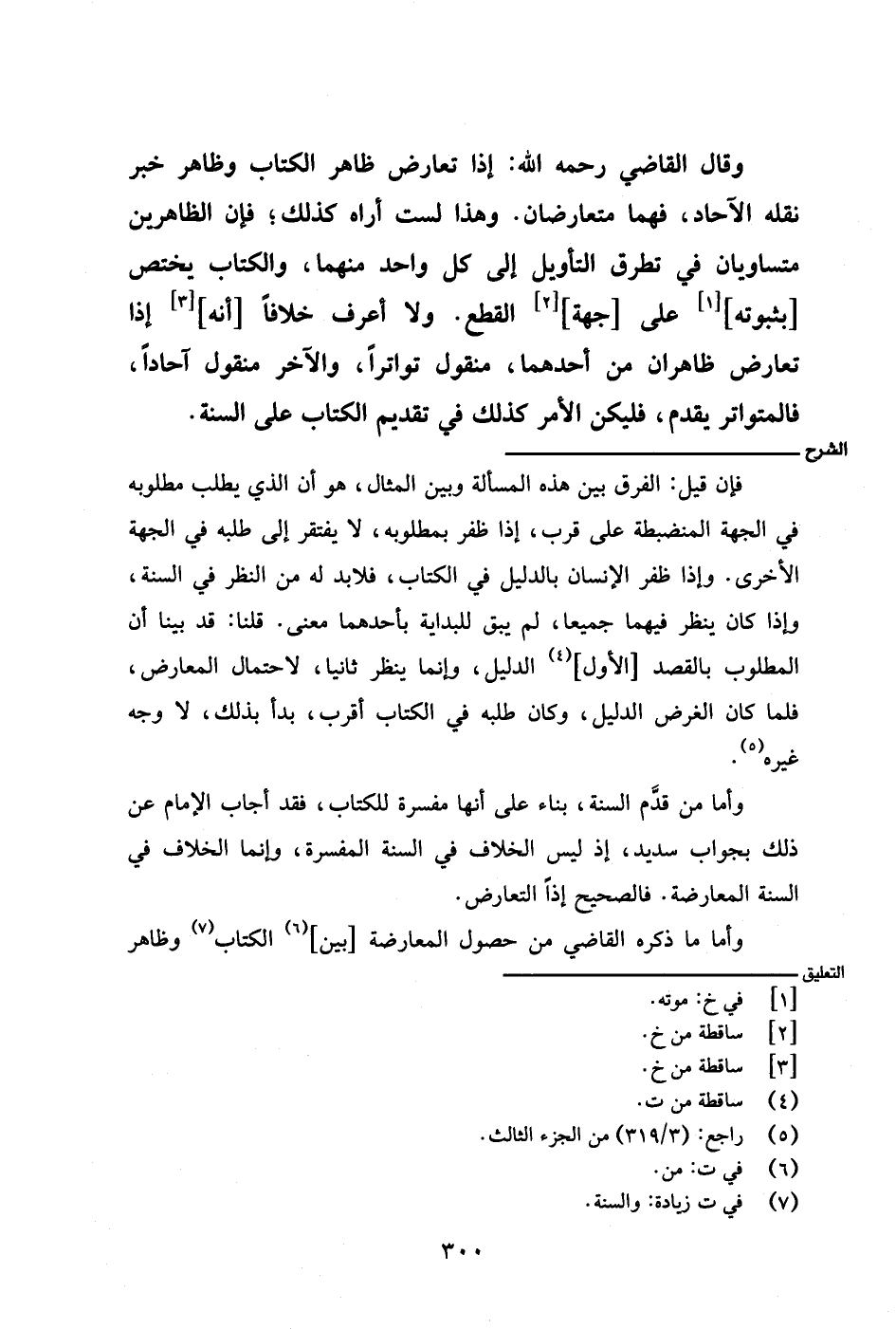 وأما ما ذكره القاضي من حصول المعارضة [بين] الكتاب وظاهر