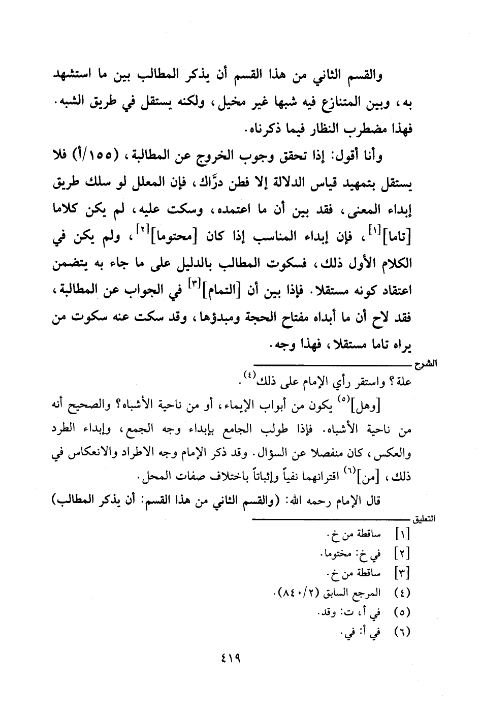 قال الإمام رحمه الله: (والقسم الثاني من هذا القسم: أن يذكر المطالب)