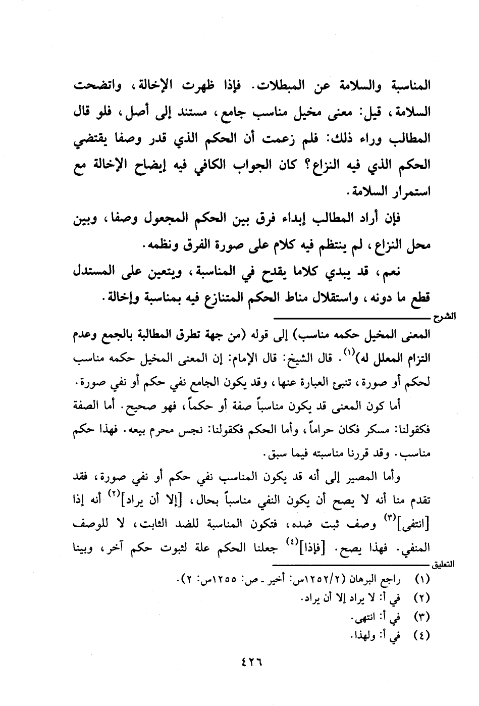وأما المصير إلى أنه قد يكون المناسب نفي حكم أو نفي صورة، فقد تقدم منا أنه لا يصح أن يكون النفي مناسبًا بحال، [إلا أن يراد] أنه إذا [انتفى] وصف ثبت ضده، فتكون المناسبة للضد الثابت، لا للوصف المنفي. فهذا يصح. [فإذا] جعلنا الحكم علة لثبوت حكم آخر، وبينا