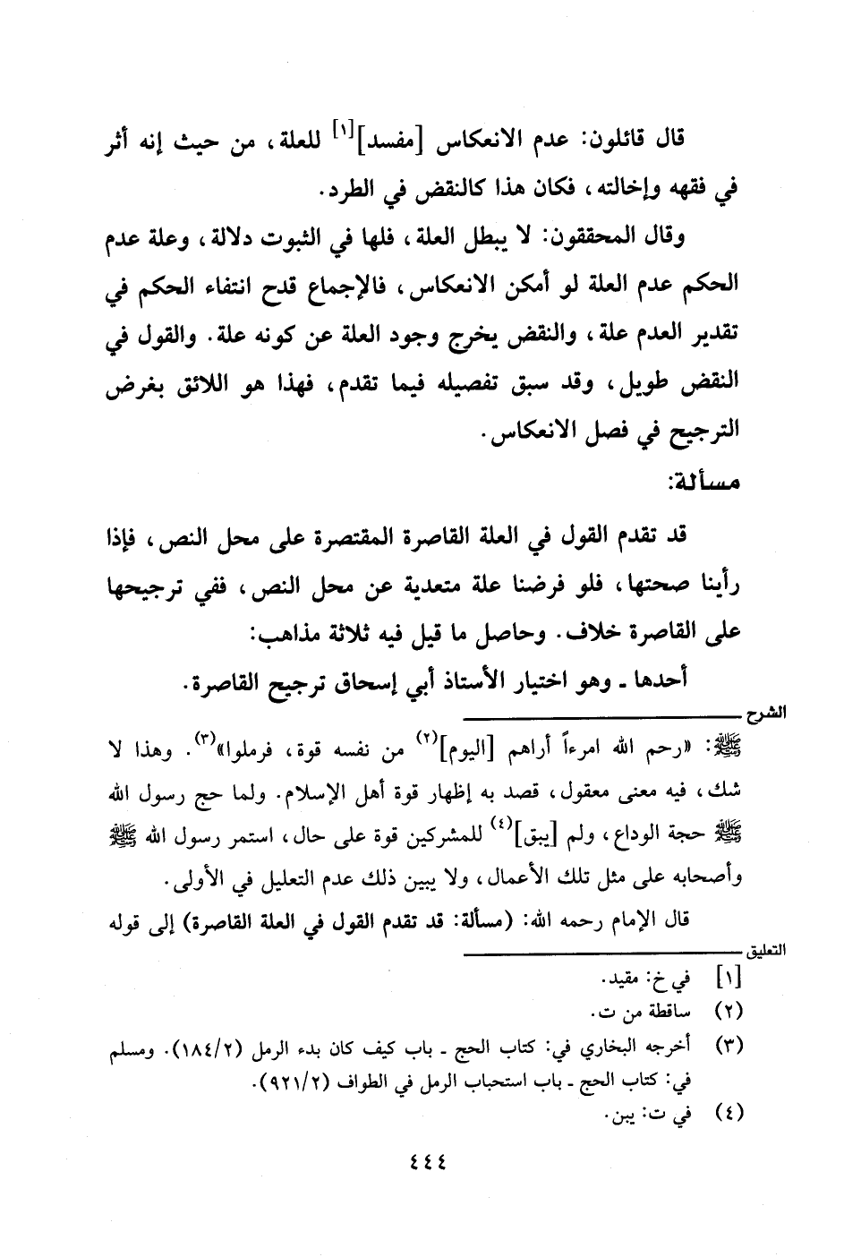 قال الإمام رحمه الله: (مسألة: قد تقدم القول في العلة القاصرة) إلى قوله