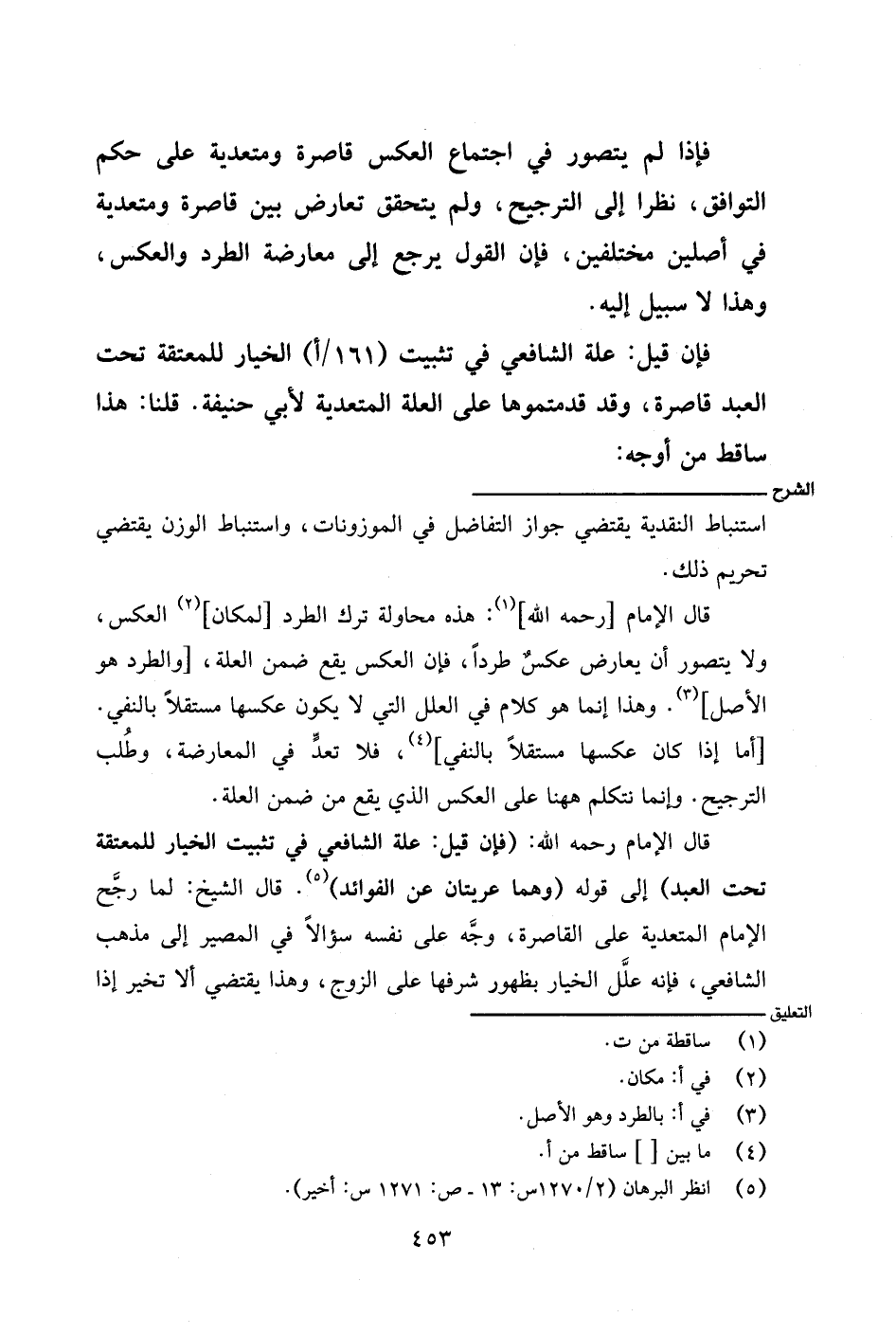 قال الإمام رحمه الله: (فإن قيل: علة الشافعي في تثبيت الخيار للمعتقة تحت العبد) إلى قوله (وهما عريتان عن الفوائد). قال الشيخ: لما رجَّح الإمام المتعدية على القاصرة، وجَّه على نفسه سؤالًا في المصير إلى مذهب الشافعي، فإنه علَّل الخيار بظهور شرفها على الزوج، وهذا يقتضي ألا تخير إذا