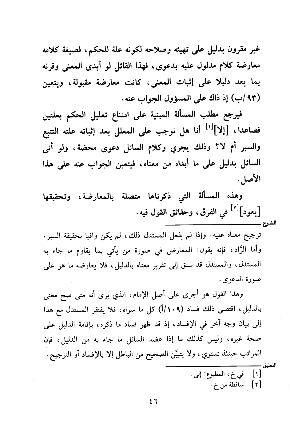 ترجيح معناه عليه. وإذا لم يفعل المستدل ذلك، لم يكن وافيًا بحقيقة السبر. وأما الراد، فإنه يقول: المعارض في صورة من يأتي بما يقاوم ما جاء به المستدل، والمستدل قد سبق إلى تقرير معناه بالدليل، فلا يعارضه ما هو على صورة الدعوى.