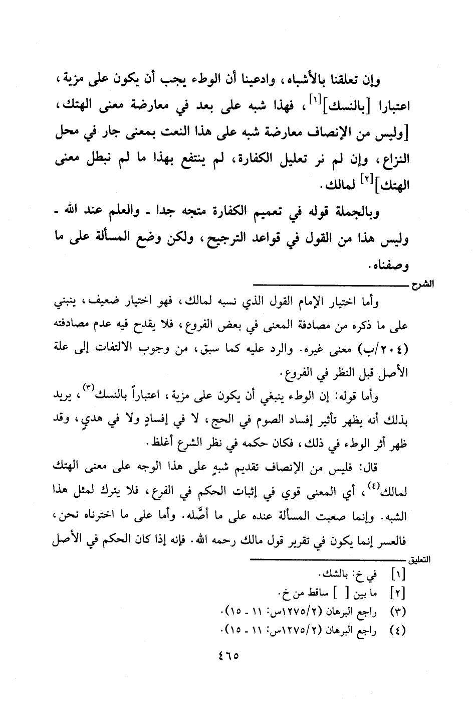قال: فليس من الإنصاف تقديم شبه على هذا الوجه على معنى الهتك لمالك، أي المعنى قوي في إثبات الحكم في الفرع، فلا يترك لمثل هذا الشبه. وإنما صعبت المسألة عنده على ما أصَّله. وأما على ما اخترناه نحن، فالعسر إنما يكون في تقرير قول مالك رحمه الله. فإنه إذا كان الحكم في الأصل
