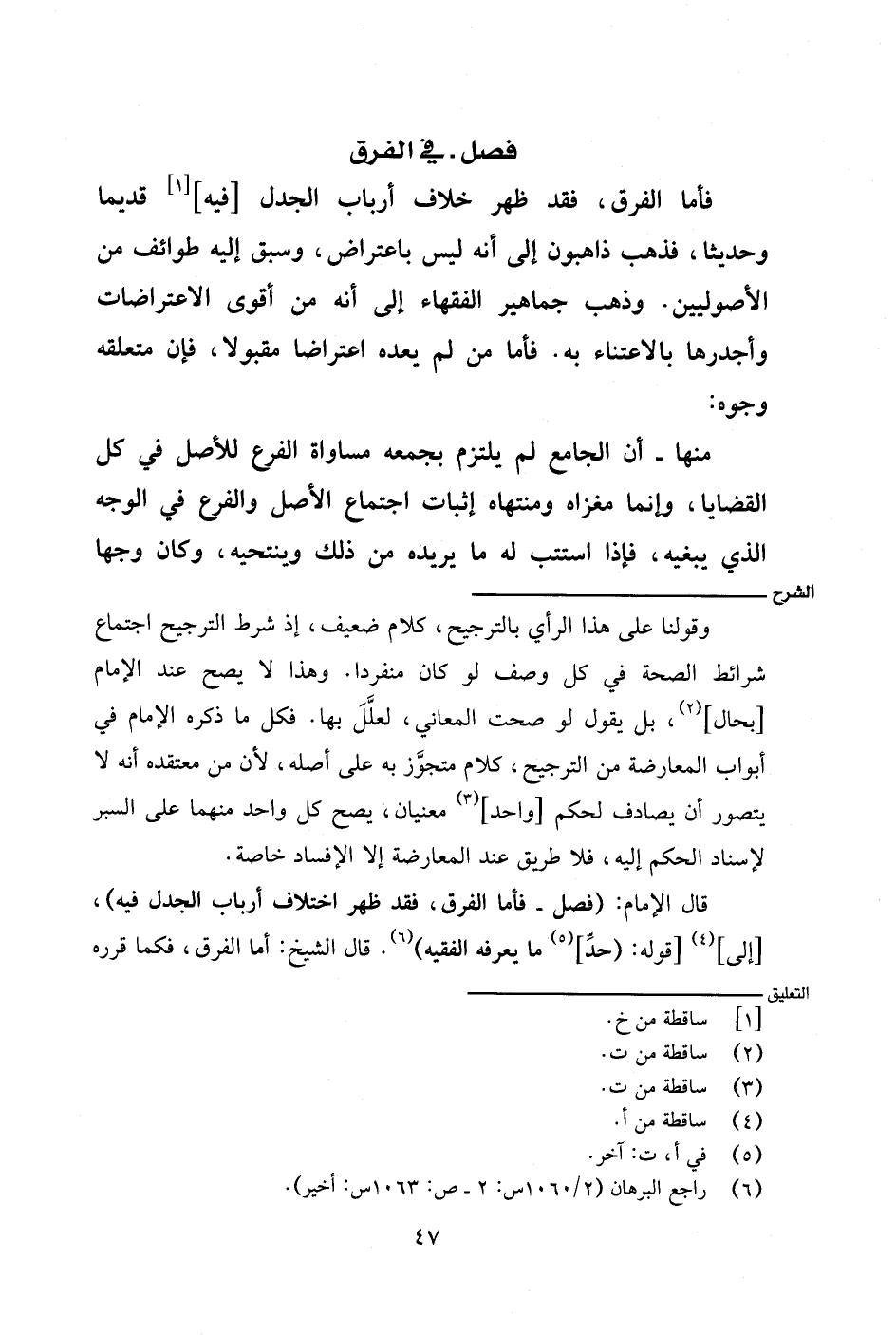 قال الإمام: (فصل- فأما الفرق، فقد ظهر اختلاف أرباب الجدل فيه)، [إلى] [قوله: (حد] ما يعرفه الفقيه. قال الشيخ: أما الفرق، فكما قرره